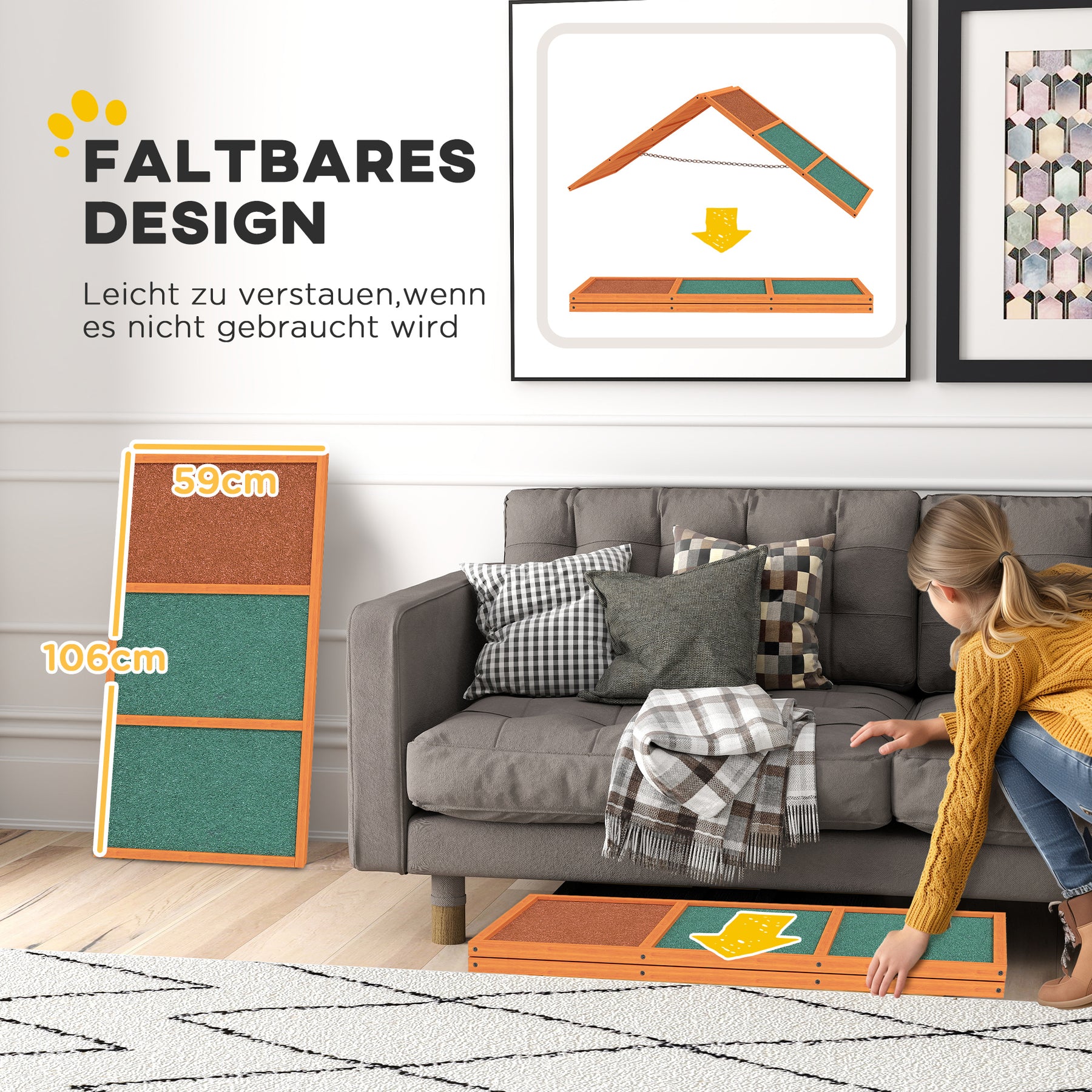 Rampen kan nemt foldes sammen og opbevares, hvilket gør den praktisk til både hjemmebrug og på farten.