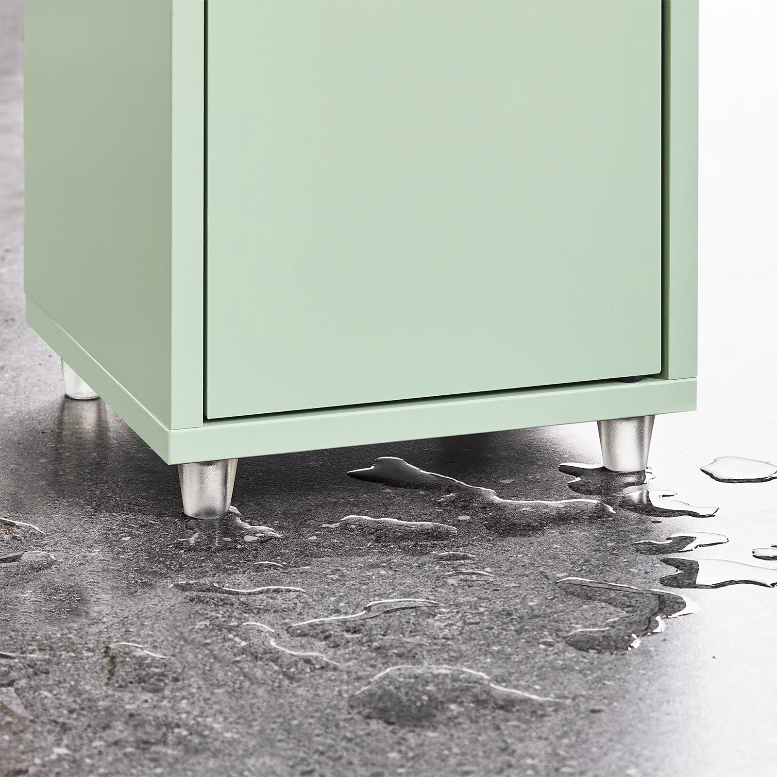 Fugtresistent og holdbart: Skabet er lavet af høj-kvalitets E1-MDF med en glat, lakeret overflade. De vandafvisende fødder sikrer fremragende fugtbestandighed, hvilket gør det ideelt til et fugtigt miljø som badeværelset.