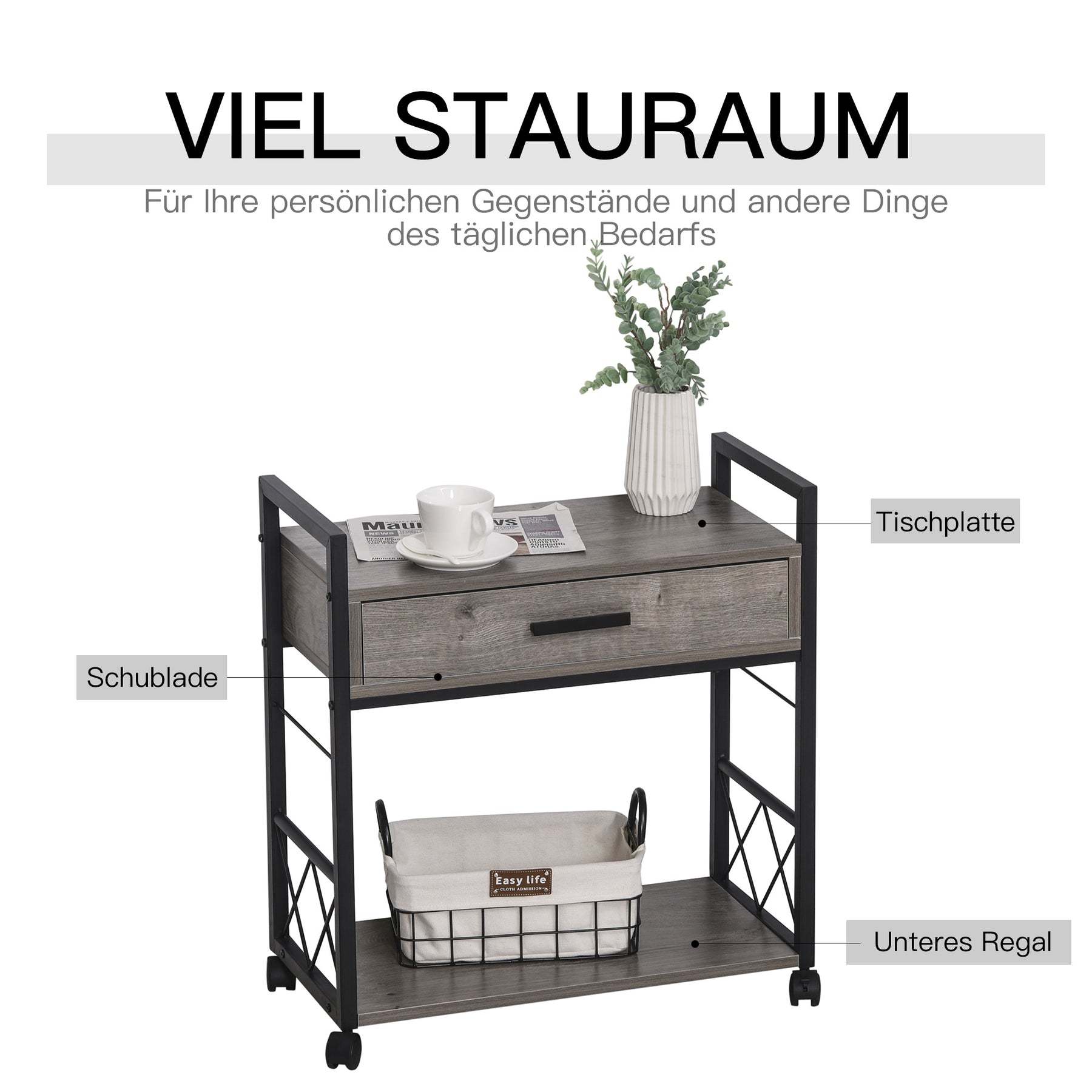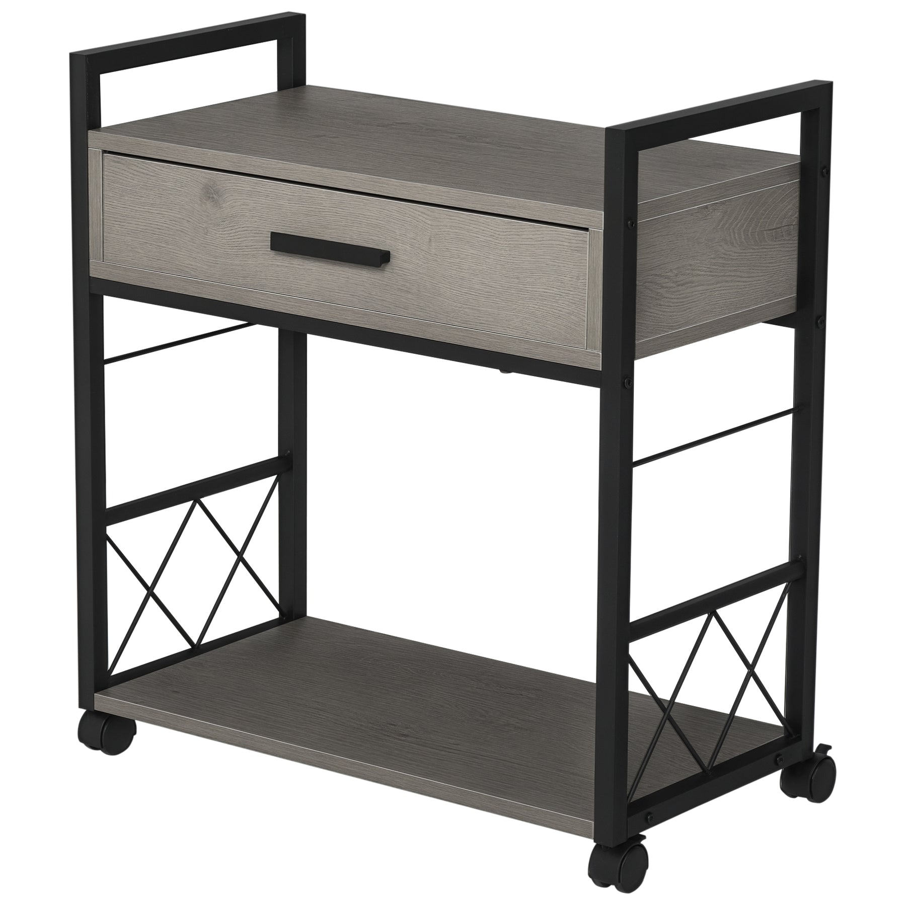 Sidebord serveringsvogn med hjul køkkenvogn sofabord med skuffe opbevaring skænk flytbar grå spånplade 60 x 30 x 65 cm