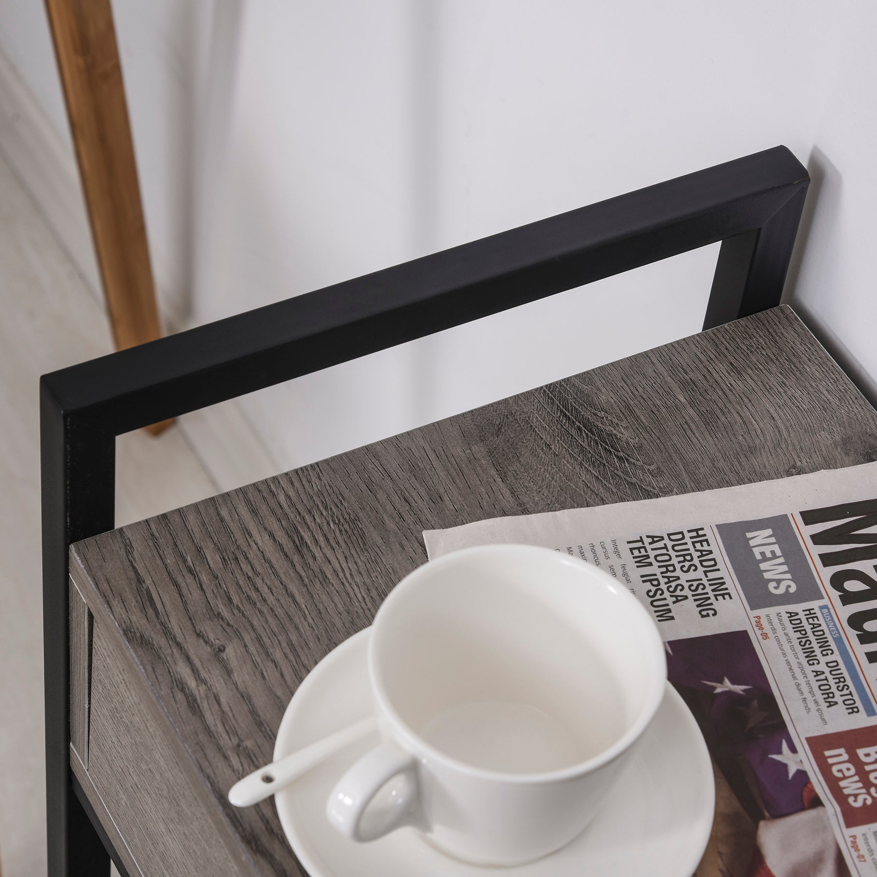 • Stor bordplade og åben hylde til dekorationer eller andre genstande