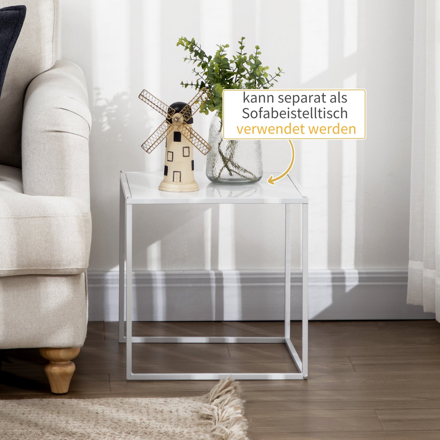 Opdag det elegante sofabordsæt – en harmonisk kombination af funktionalitet og moderne design. Disse to alsidige sofaborde er ideelle til at vise fotos, bøger og snacks, og kan sættes sammen for at spare plads. Den robuste stålramme og de klare, firkantede former tilfører et stilfuldt præg til dit rum.