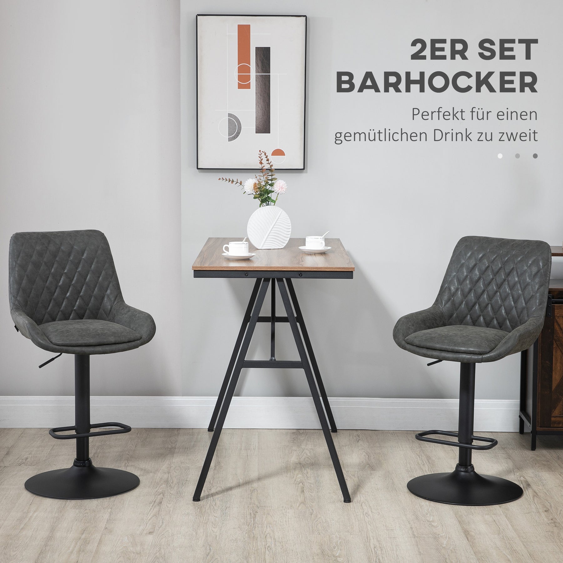 Giv dit køkken eller din spisestue et stilfuldt look med disse barstole. Betrækket i kunstlæder skaber et smukt udseende, mens det polstrede sæde og det høje ryglæn giver behagelig siddekomfort og støtte. Barstolens metalramme sikrer stabilitet og et sikkert fodfæste, og med en højdejustering fra 63 til 83 cm kan du finde den optimale højde til dig.