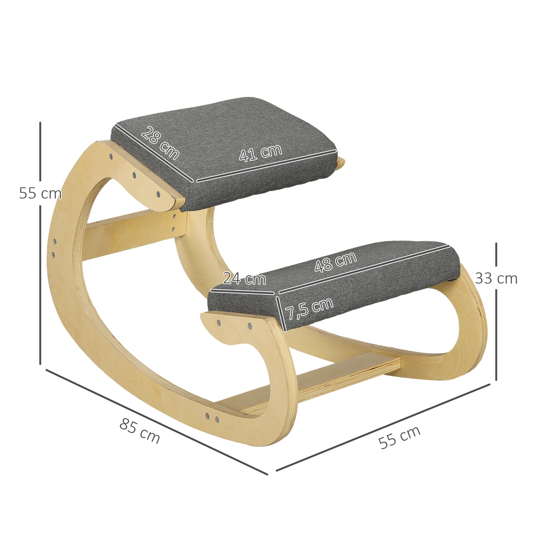 Optimer din arbejdsplads med denne knæstol, der er designet til at forbedre kropsholdningen og lindre rygproblemer. Den fordelagtige vægtfordeling på tværs af hofter og ben sikrer optimal komfort, mens det gyngende design holder dig fokuseret og vågen. Ideel til meditation, skrivning eller som en stilfuld kontorstol, hvor komfort møder stil.