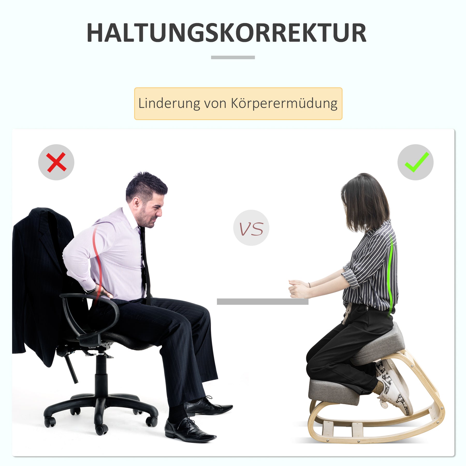 Knælestol, ergonomisk skammel, polstret skammel til sund siddestilling, birketræ, 120 kg lasteevne, grå
