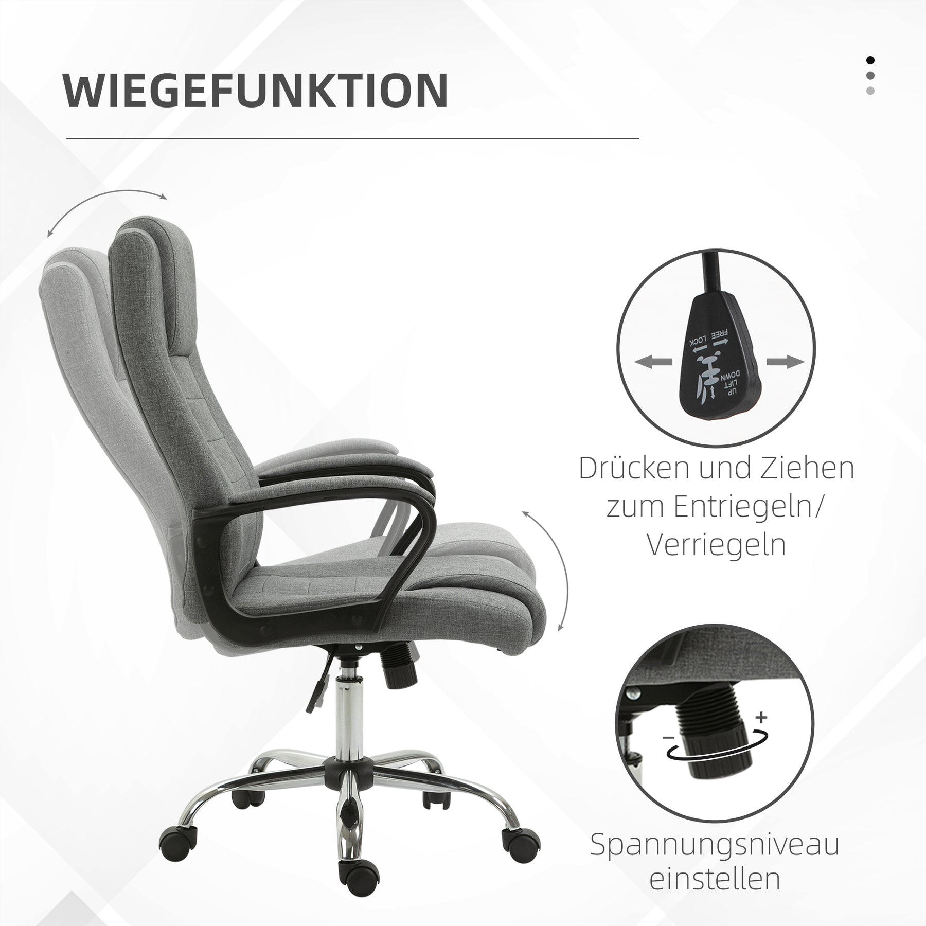Opgrader dit arbejdsområde med en moderne kontorstol, der kombinerer komfort og funktionalitet. Den høje ryglæn sikrer, at du kan sidde behageligt i lange perioder, mens den indbyggede gyngefunktion giver dig mulighed for at tage en velfortjent pause. Juster sædehøjden efter dine præferencer og nyd den nemme bevægelse takket være de fem plastikhjul.