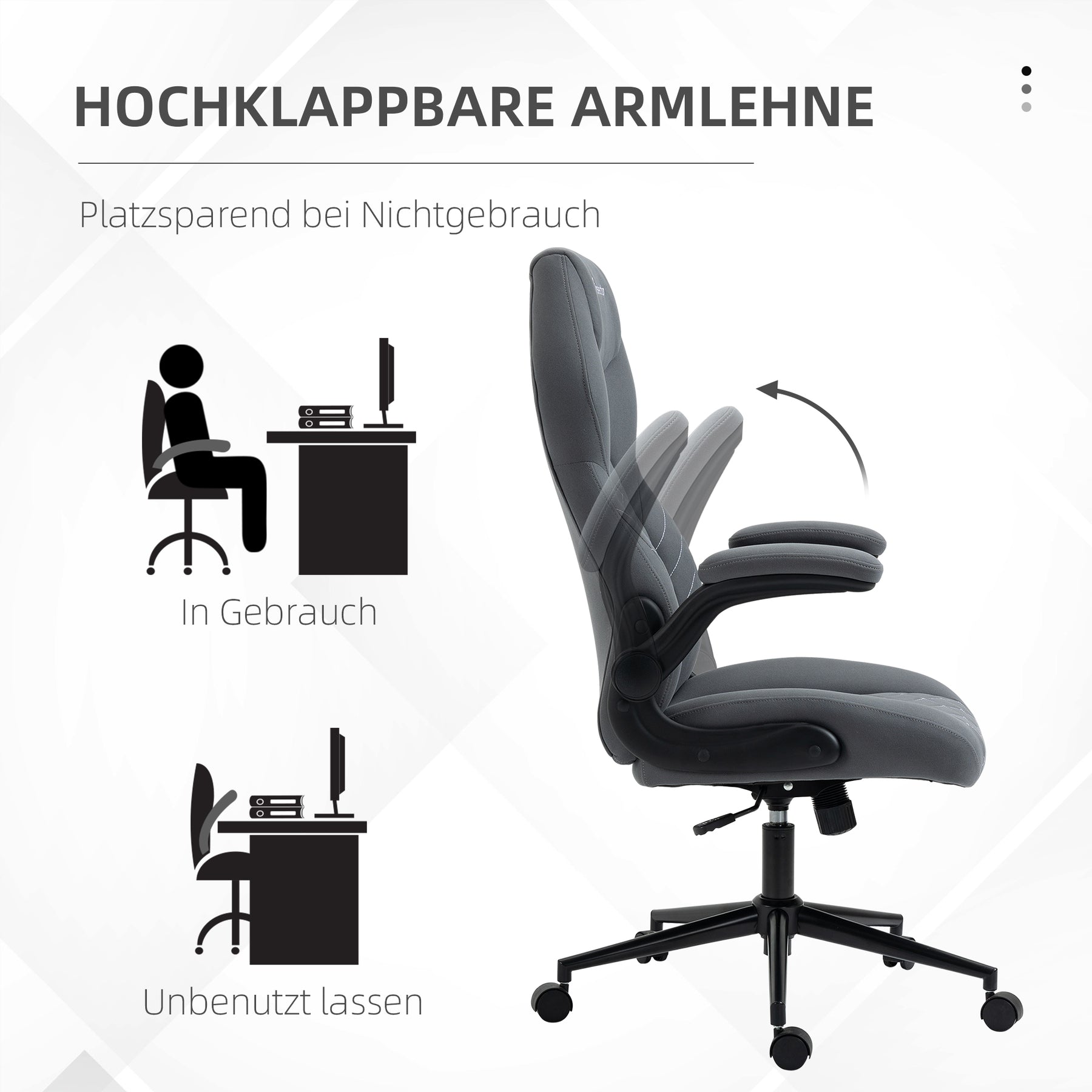 Kontorstol med ryglæn, højdejusterbart, foldbare armlæn, vippefunktion, mørkegrå