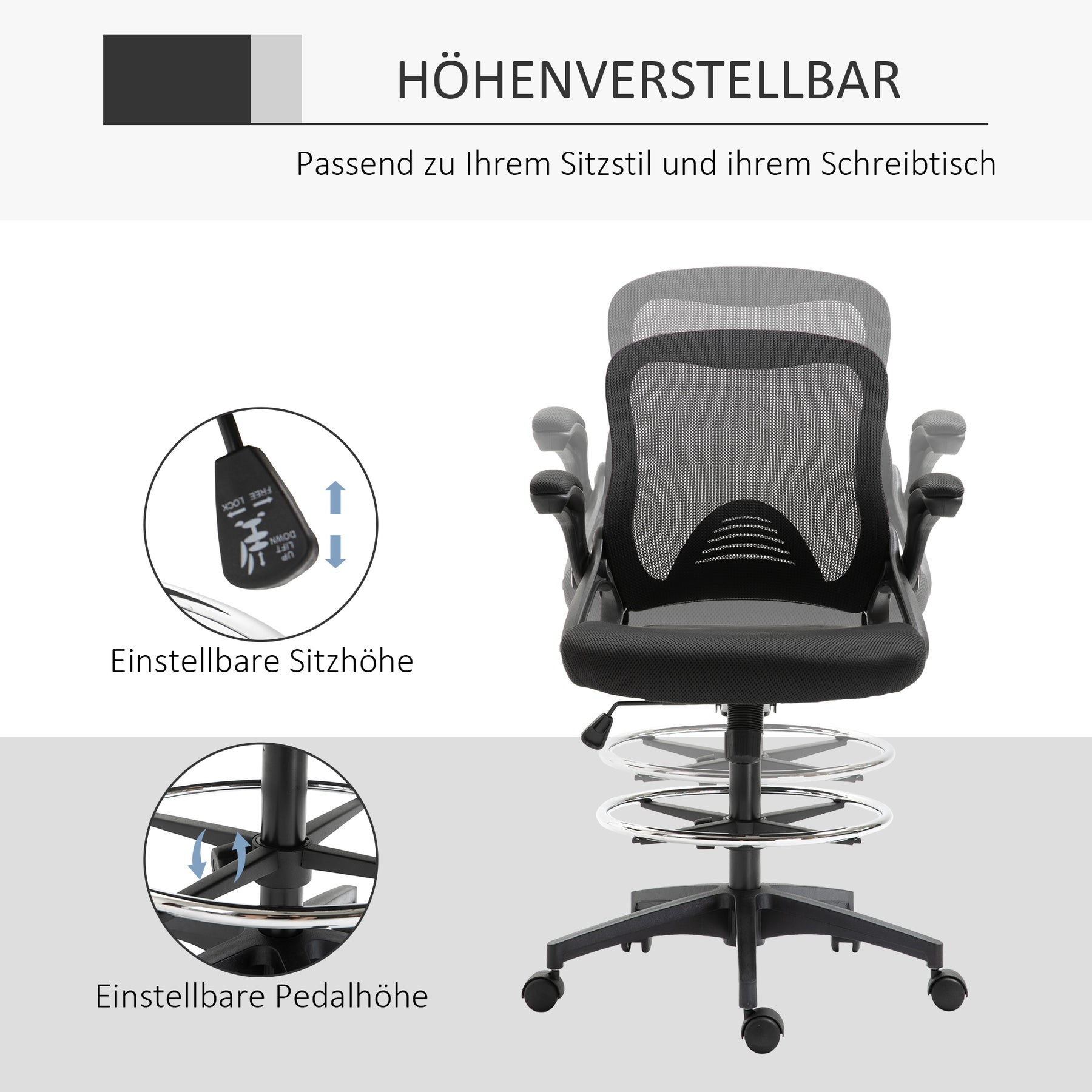 Det åndbare betræk og de opklappelige armlæn fuldender siddeoplevelsen. Med justerbare sæde- og fodstøttehøjder kan stolen også bruges som en ståstol, så du kan arbejde, som du ønsker.