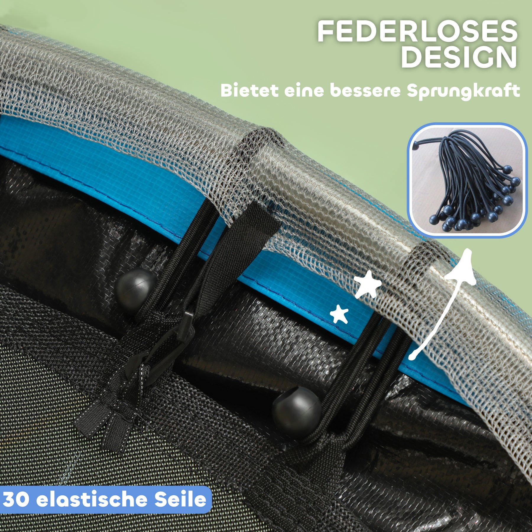 • Elastiske reb og en stærk plastikmåtte sikrer sikker hopning