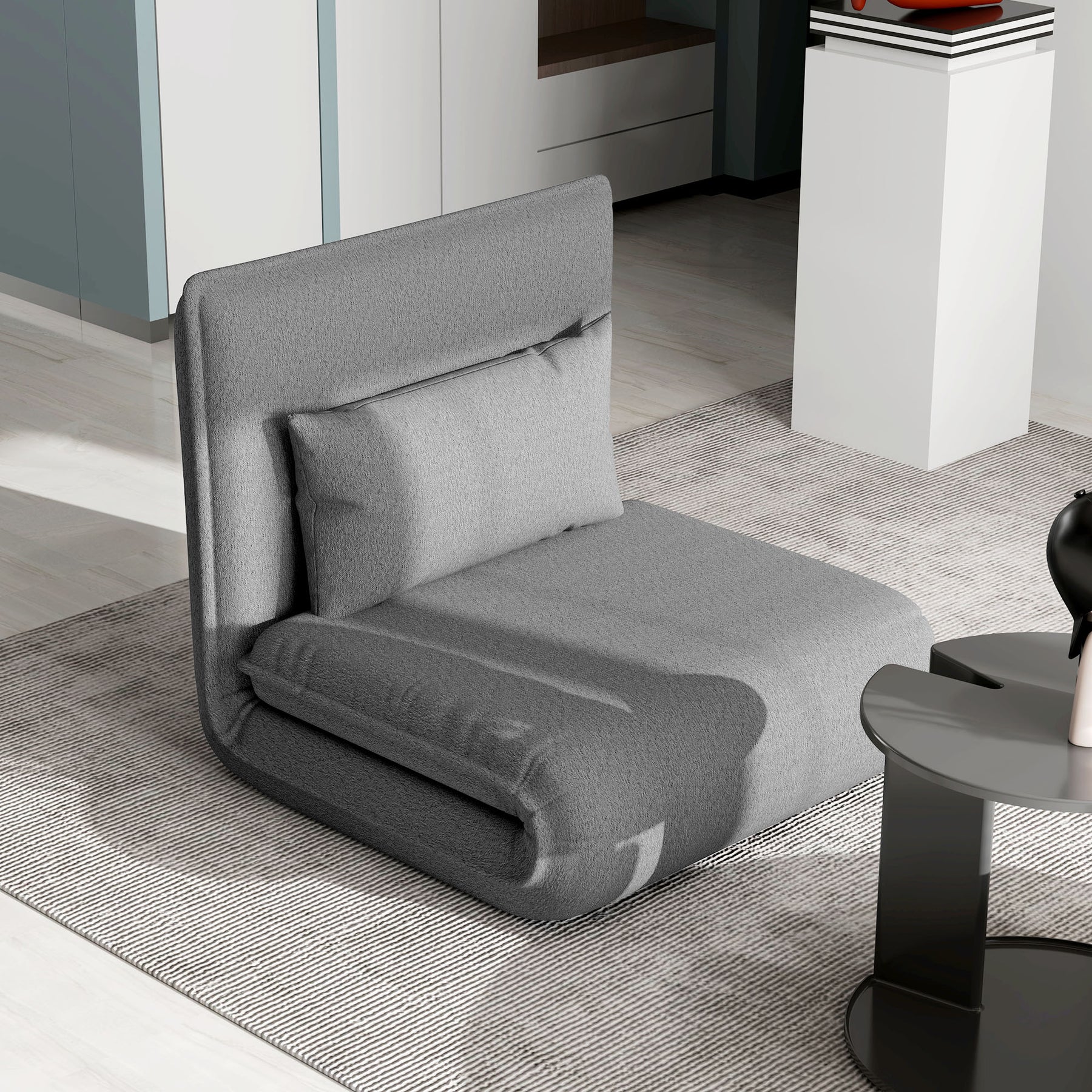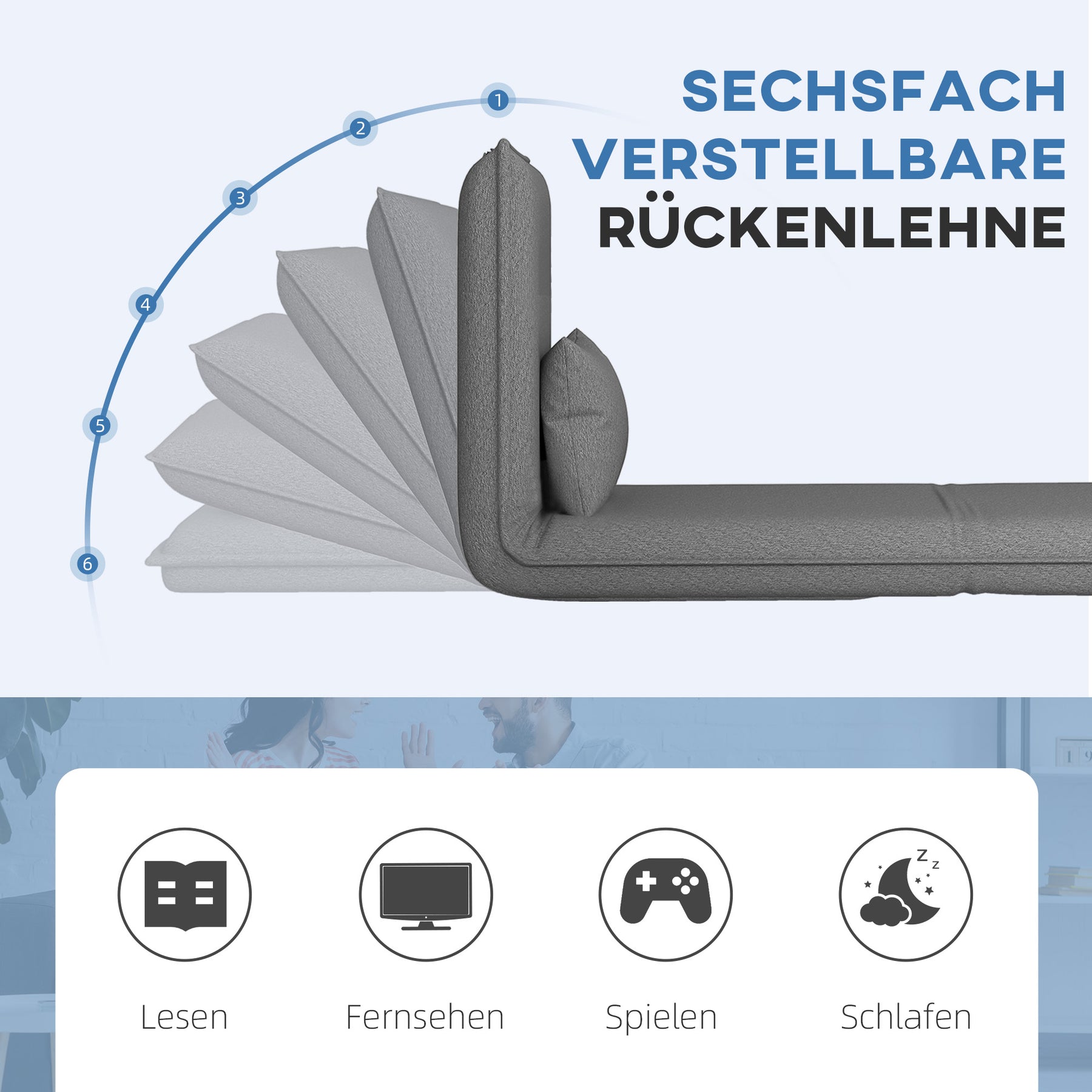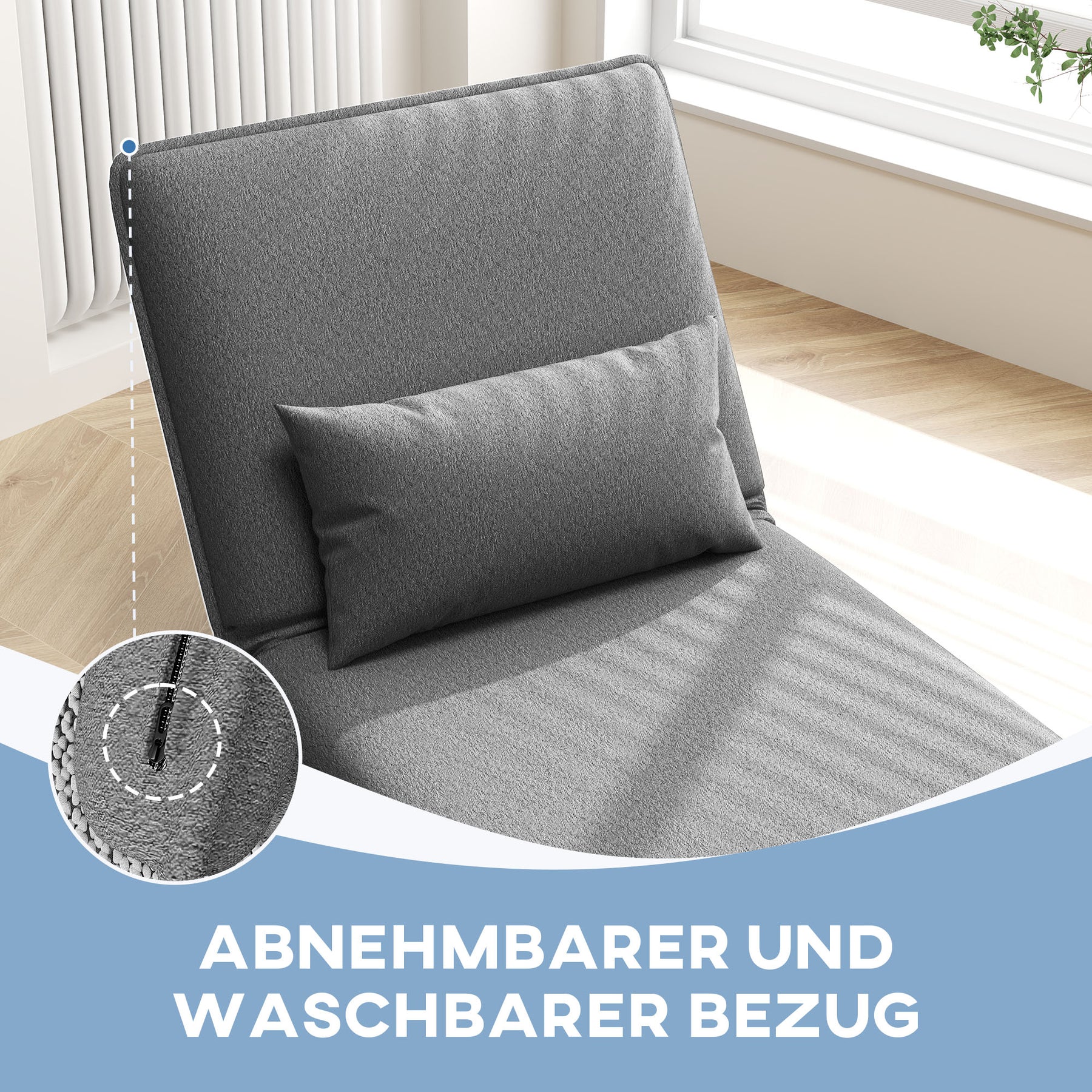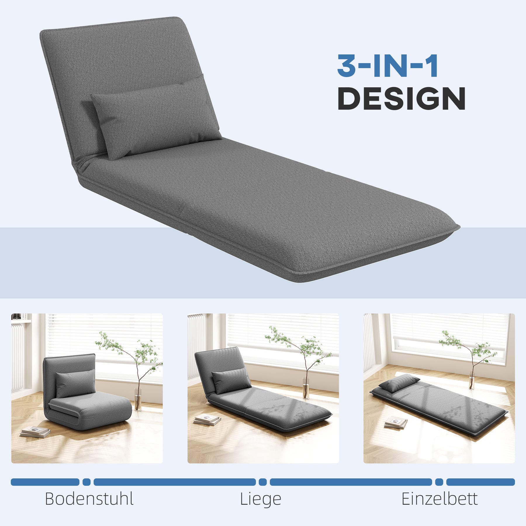 Oplev den ultimative alsidighed med denne gulvstol, der nemt kan forvandles til en chaiselong eller en enkeltseng. Slap af med den 6-vejs justerbare ryglæn, der giver dig mulighed for at finde den perfekte position, mens du nyder det bløde kunstlæder og den tætfyldte skumhynde. Det aftagelige og vaskbare betræk sikrer nem vedligeholdelse, så du kan fokusere på komforten.