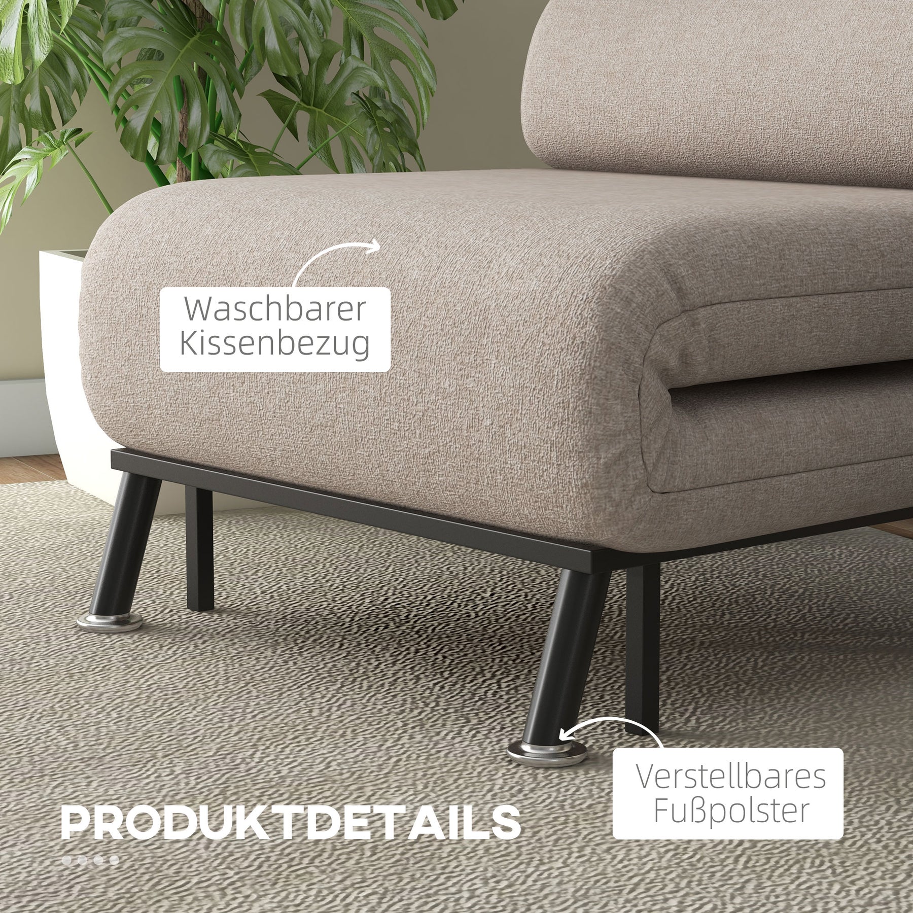 Klapstol med sengefunktion, foldbar afslapningsstol i linnedlook, justerbar ryglæn, 75 x 70 x 75 cm, beige