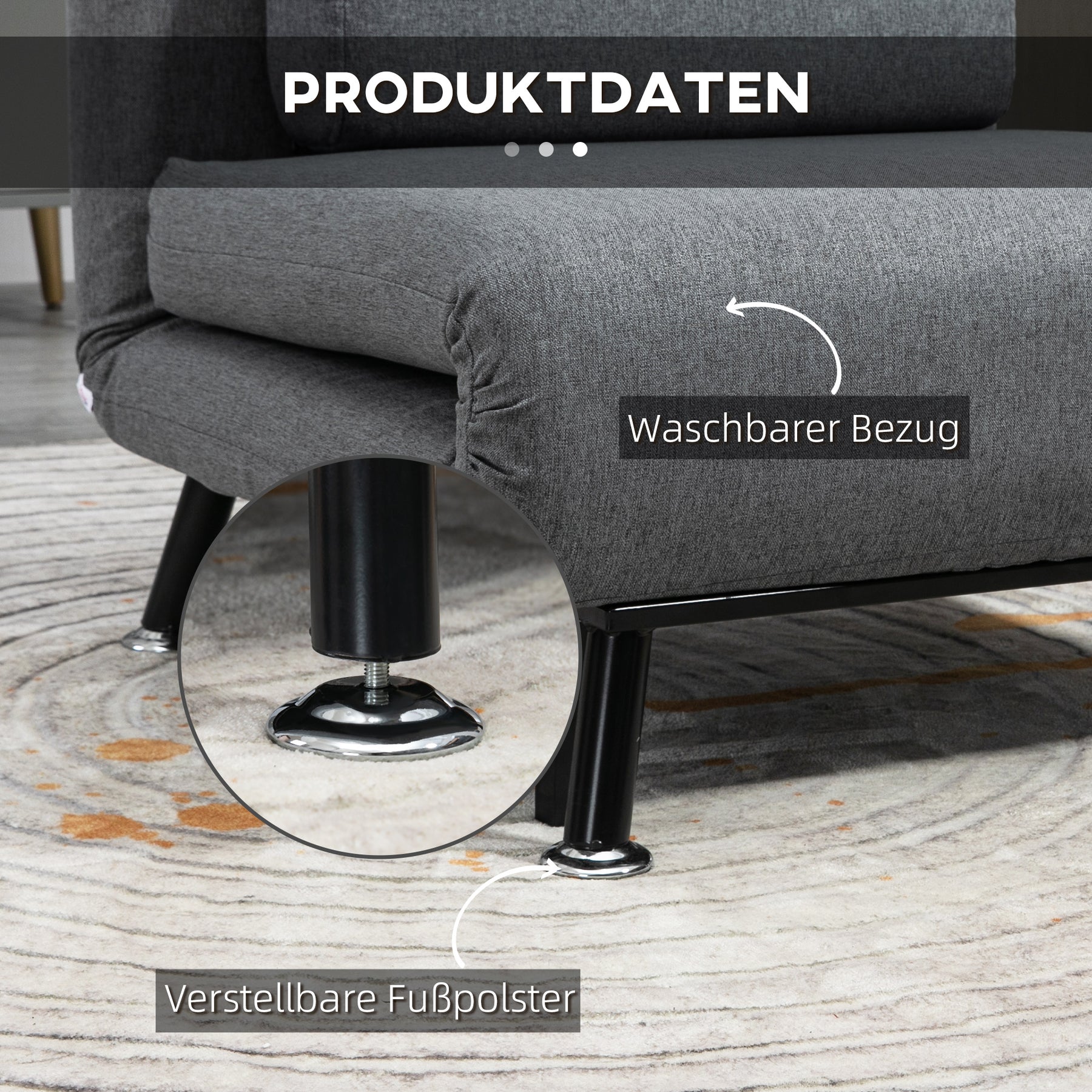 Stol med sengefunktion, fold-ud-seng, justerbar ryglæn, 75 x 70 x 75 cm, mørkegrå