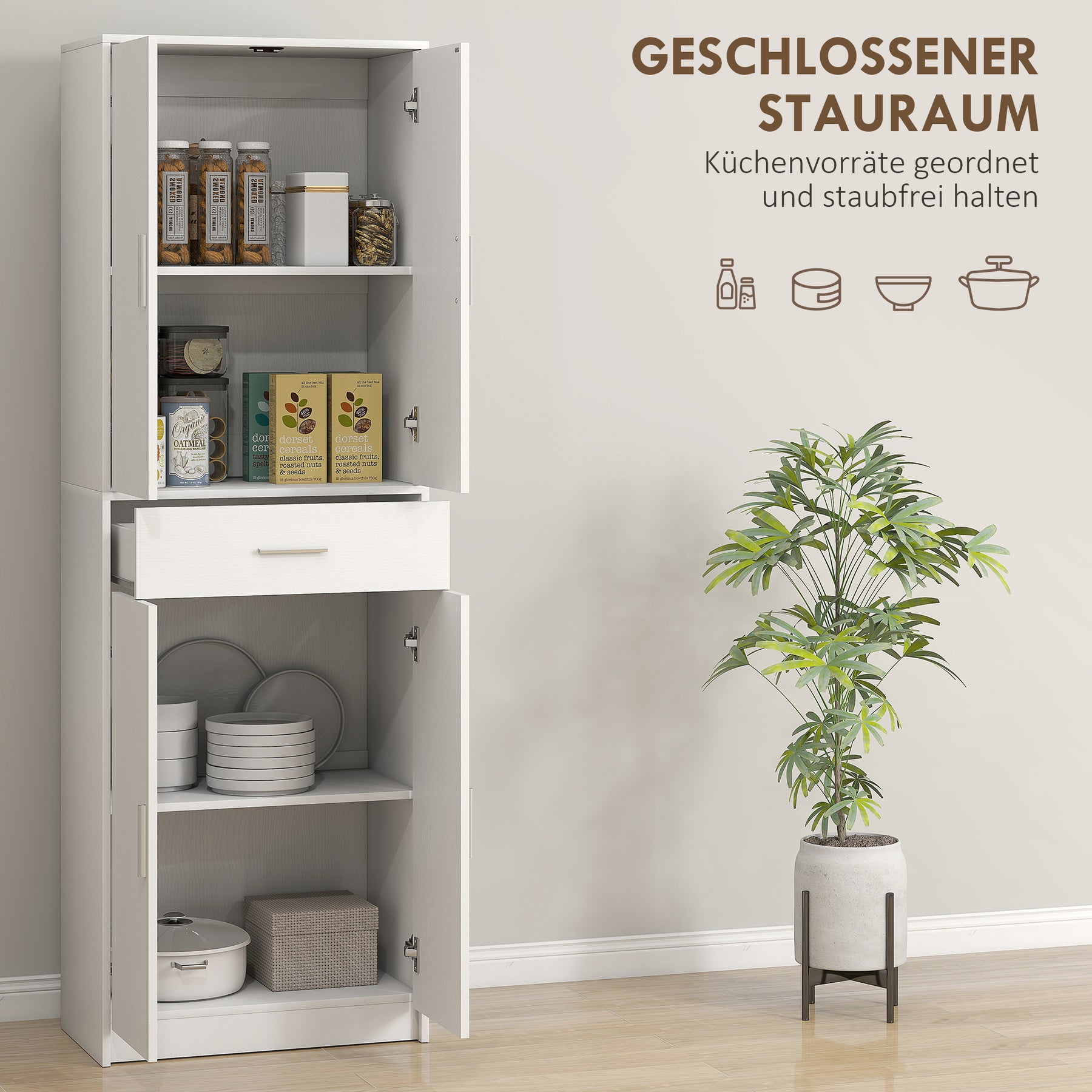 Oplev enkelhed med dette køkkenskab, der tilbyder lukket opbevaringsplads med et overskab, en midterskuffe og et underskab for at holde dine redskaber organiseret og støvfri. Vitrineskabets justerbare hylder tilpasser sig dine behov, mens den elegante hvide finish og de sølvfarvede håndtag tilføjer et moderne præg til ethvert rum.