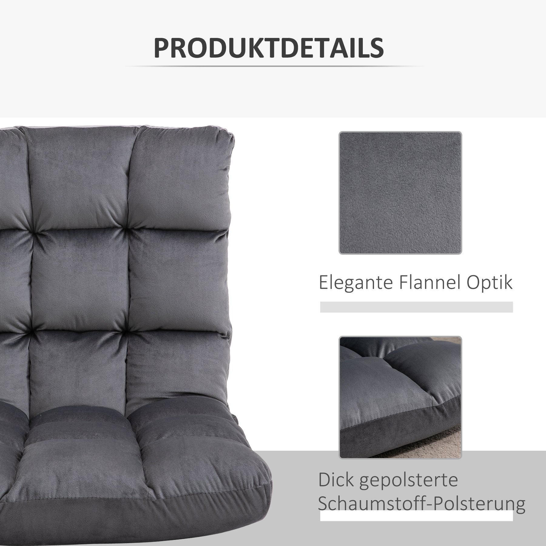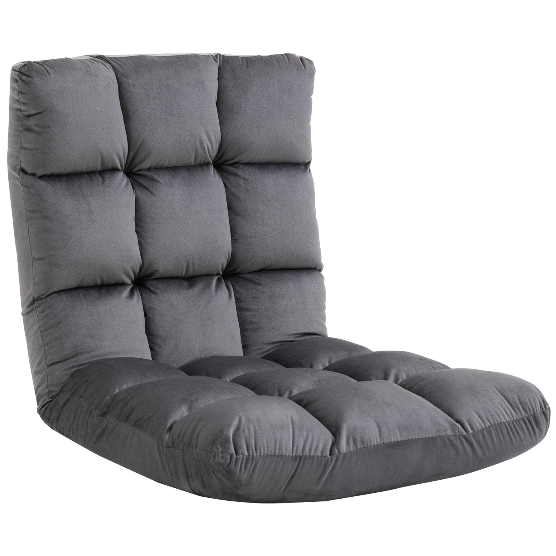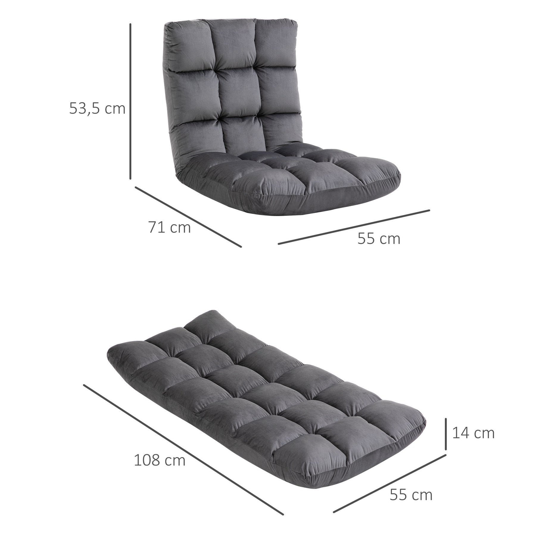Lænestol gæstemadras gulvstol, justerbar ryglæn, velourlook, 55 cm x 71 cm x 53,5 cm, grå