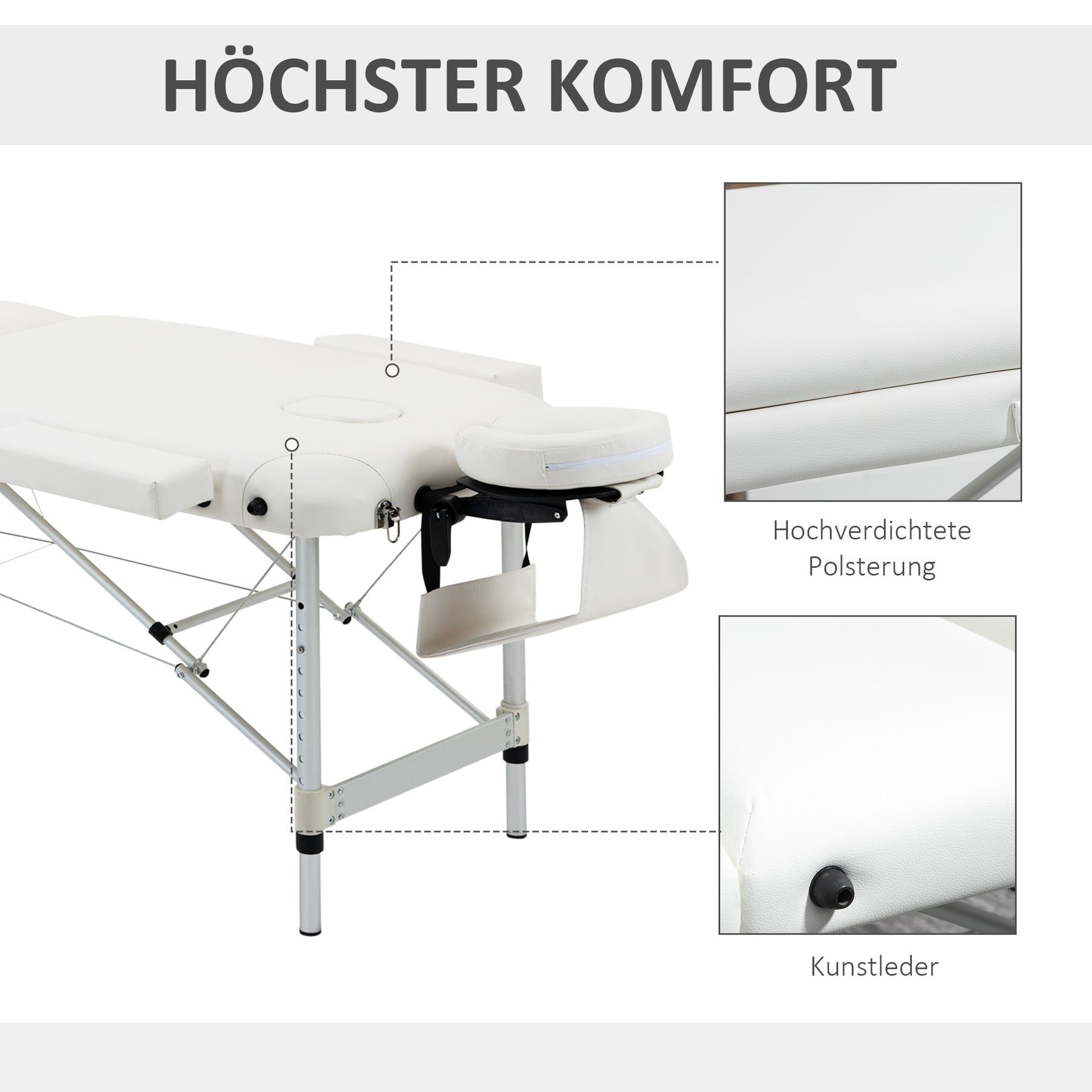 Opdag den perfekte massageoplevelse med vores justerbare massagebriks, der kombinerer holdbarhed og komfort. Den lette aluminiumsramme gør det nemt at transportere og opstille, mens de justerbare højder og nakkestøtte sikrer en skræddersyet oplevelse.