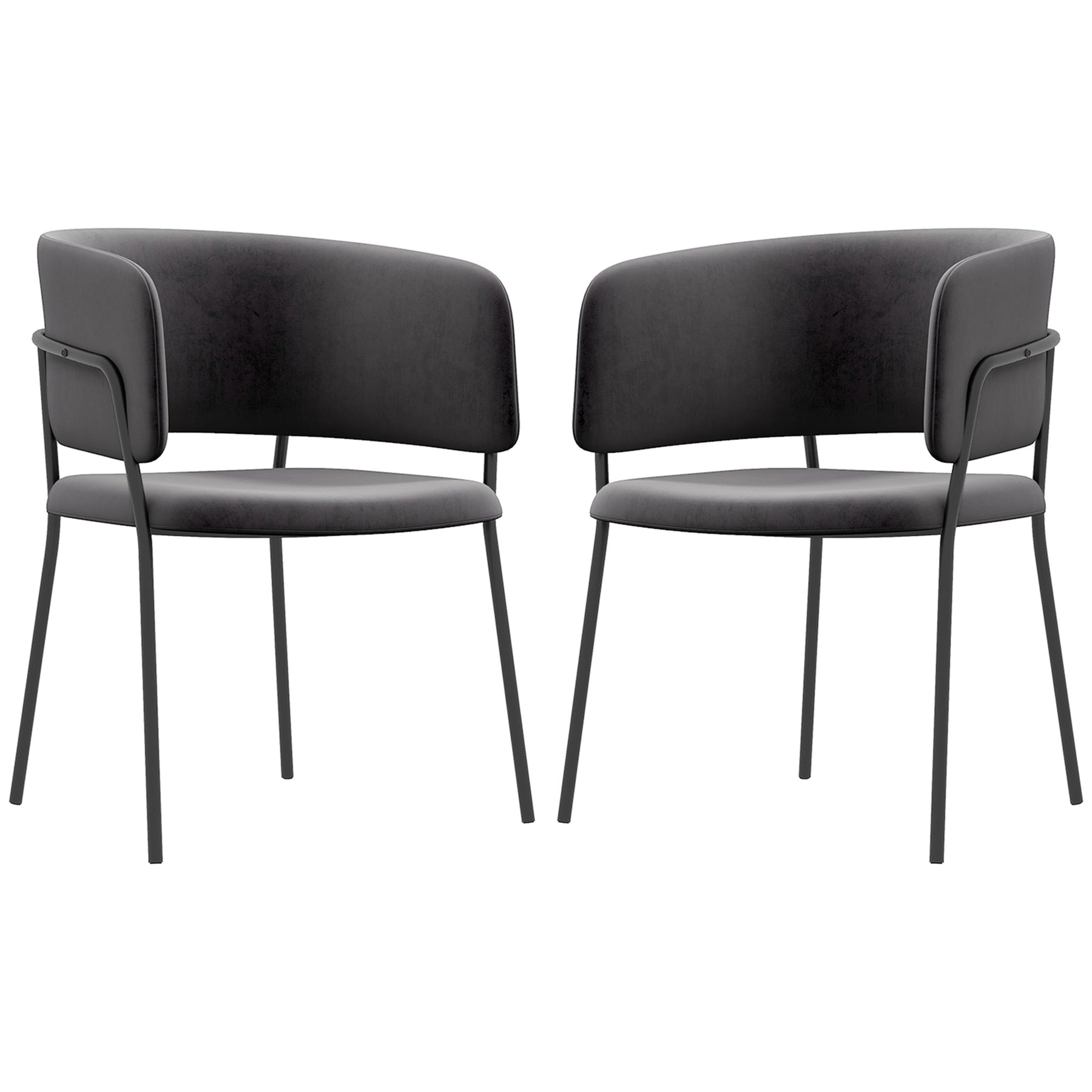 Nyd komforten med dette spisestuestolesæt, der bringer dobbelt elegance til dit hjem. Disse køkkenstole er indpakket i blødt fløjlsstof og har polstrede sæder, hvilket tilbyder ren afslapning ved hvert måltid. Ryglænet og armlænene i ét stykke giver stilfuld støtte, mens den robuste, pulverlakerede stålramme sikrer stabilitet på enhver overflade.