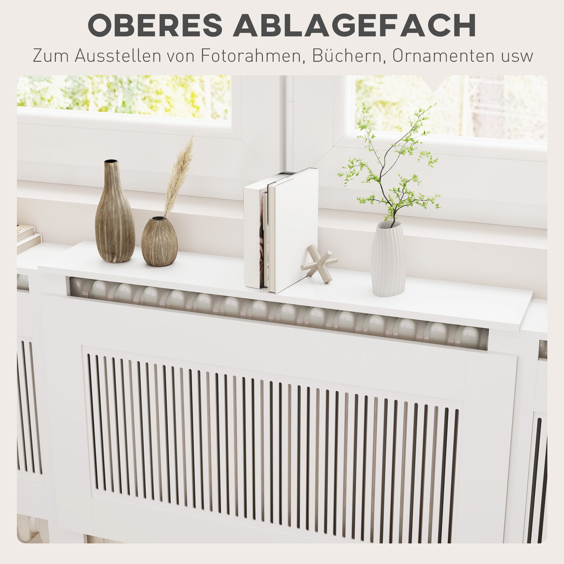 Radiatordæksel lameldesign justerbar længde 125-201cm mdf hvid