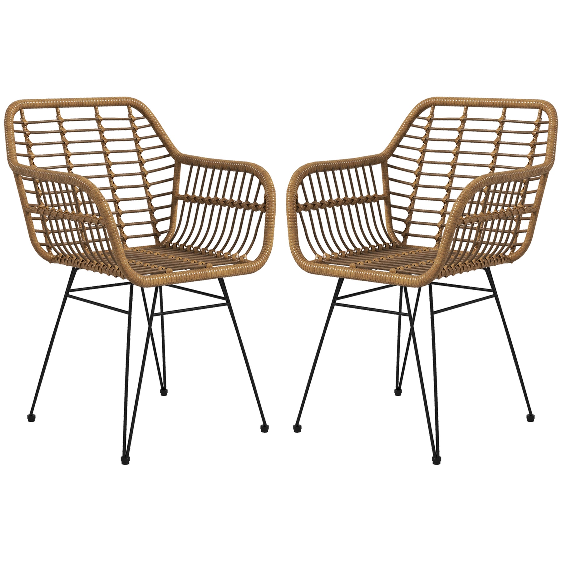 Spisestolene er den perfekte tilføjelse til dit køkken eller din spisestue. Sættet består af to karakteristiske stole med en dekorativ, behageligt buet polyrattan-sædeskal, der giver et naturligt og smukt præg til dit interiør. Den buede ryg og armlæn sikrer komfortable siddepladser, uanset om det er til spisning eller afslappede sammenkomster.