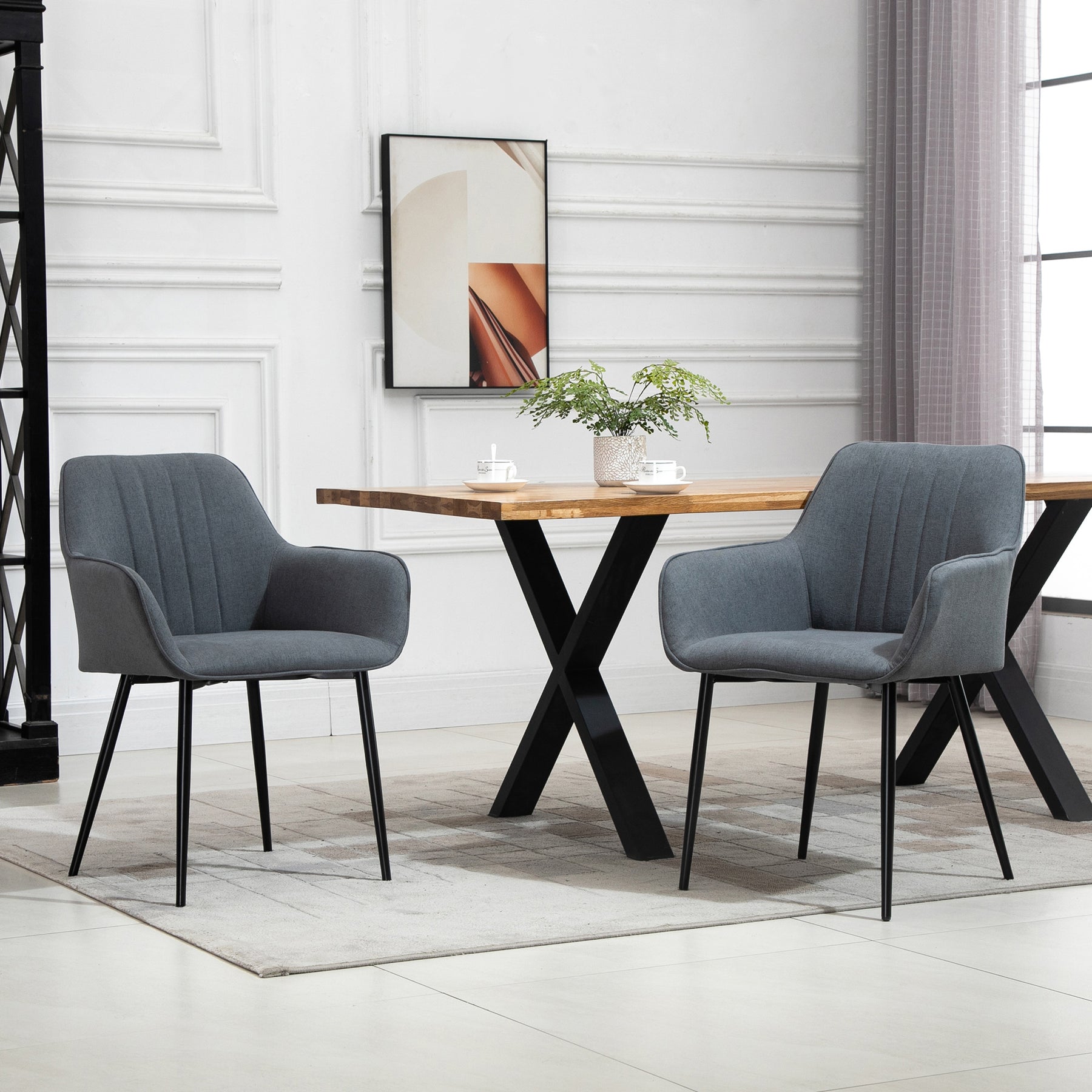 Stolene har et åndbart polyesterbetræk, ergonomisk buede ryglæn og armlæn samt robuste metalben, der sikrer et behageligt og stabilt sæde. Perfekte til din stue, spisestue eller arbejdsværelse.