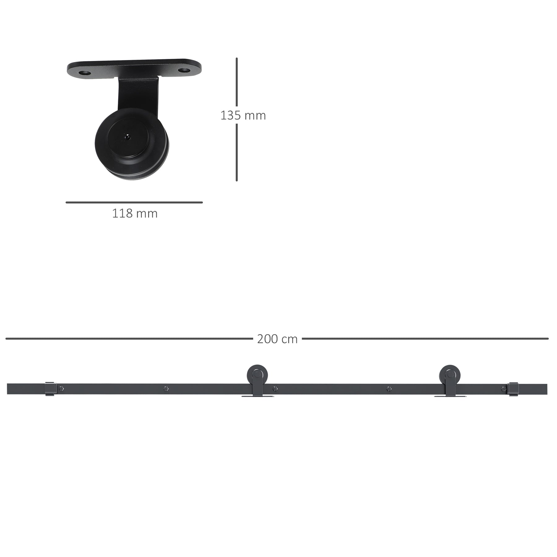 - Skinnelængde: 200 cm