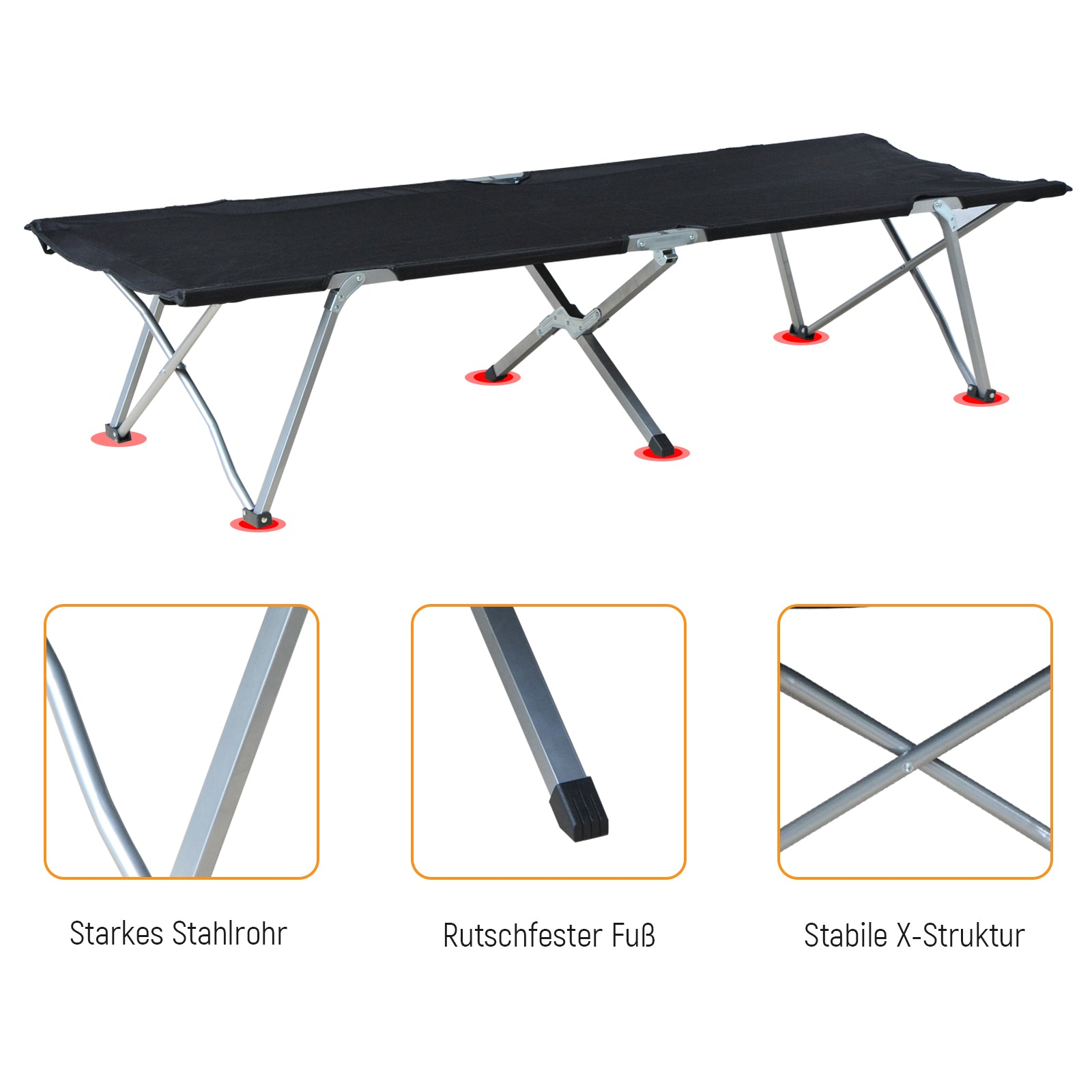 Oplev en komfortabel og praktisk løsning til din næste campingtur med denne foldbare feltseng. Den slidstærke overflade og den vandafvisende belægning sikrer, at du kan sove trygt og godt under åben himmel. Med sin fleksible anvendelse er denne campingseng perfekt til alle udendørs eventyr.
