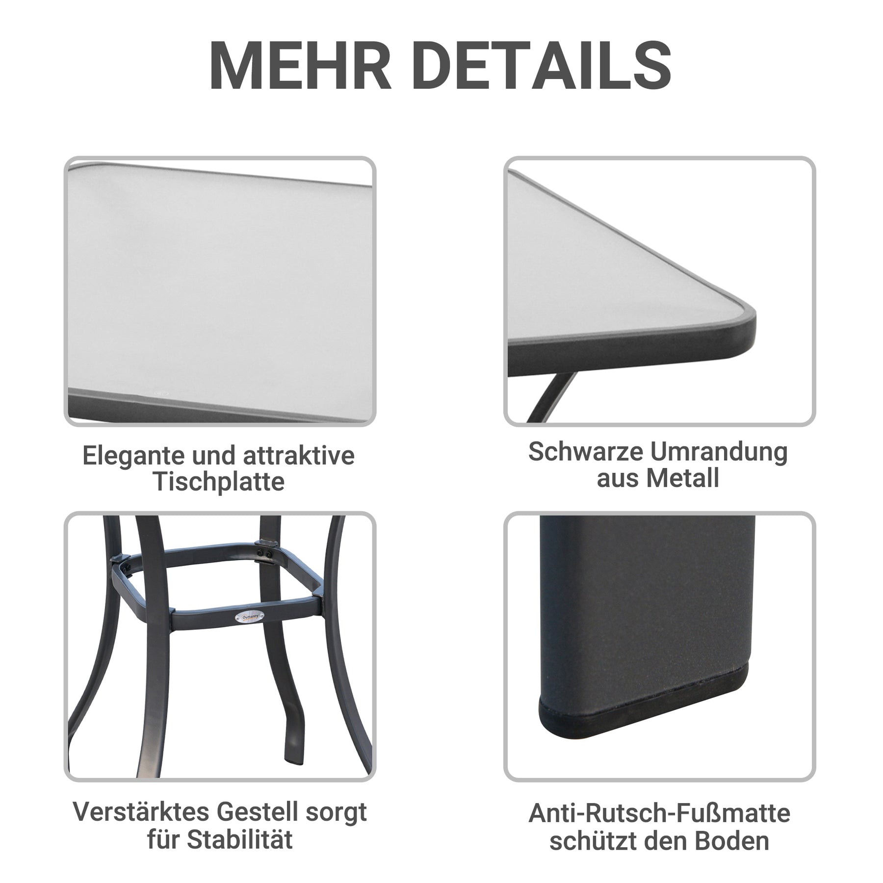 Dette elegante havebord er alsidigt takket være dets moderne design og kompakte størrelse, hvilket skaber en karakteristisk tilføjelse til haver, terrasser og altaner. De fire robuste støtteben og bordstellet er lavet af pulverlakeret metal, mens bordpladen er af holdbart hærdet glas med et fint bølget vandmønster. Sæt dig ned og afslut dagen med en afslappende kop te.