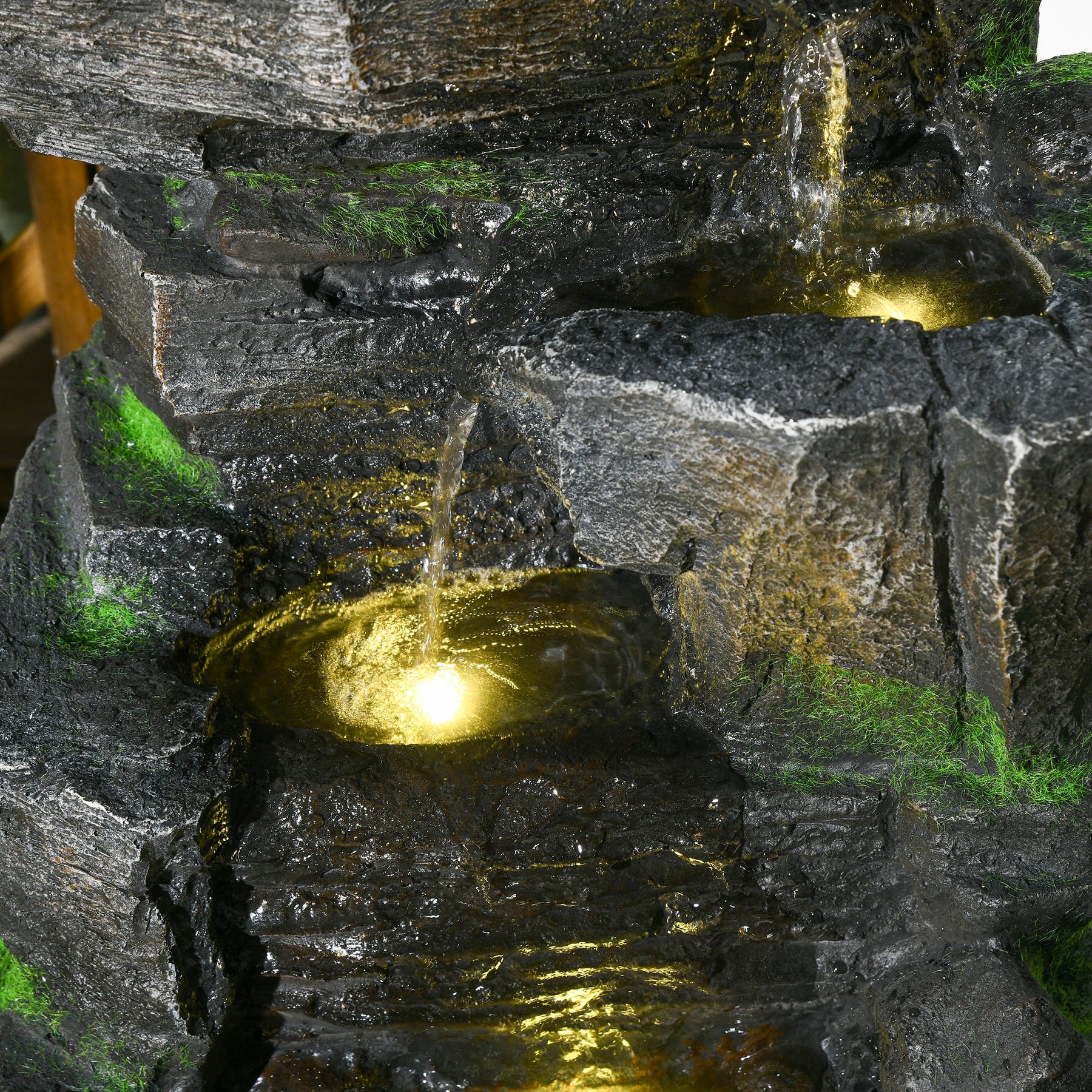 Oplev roen i din have med denne smukke kaskadefontæne, der tilfører både lyd og lys til dine udendørs omgivelser.