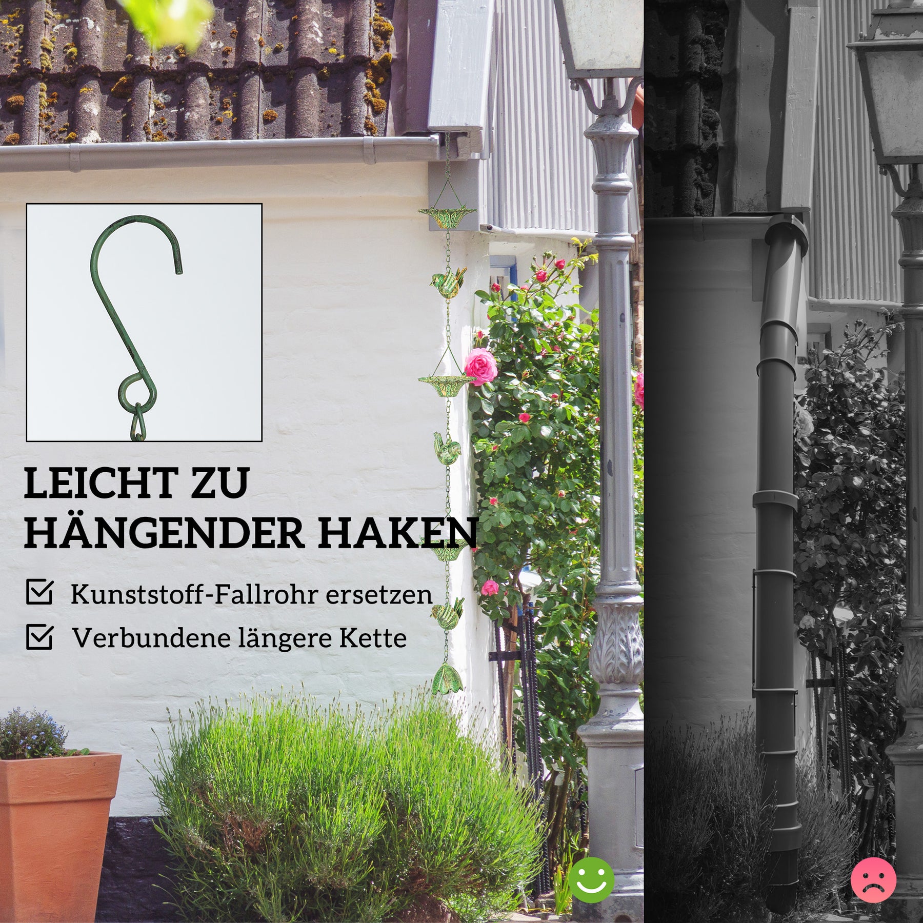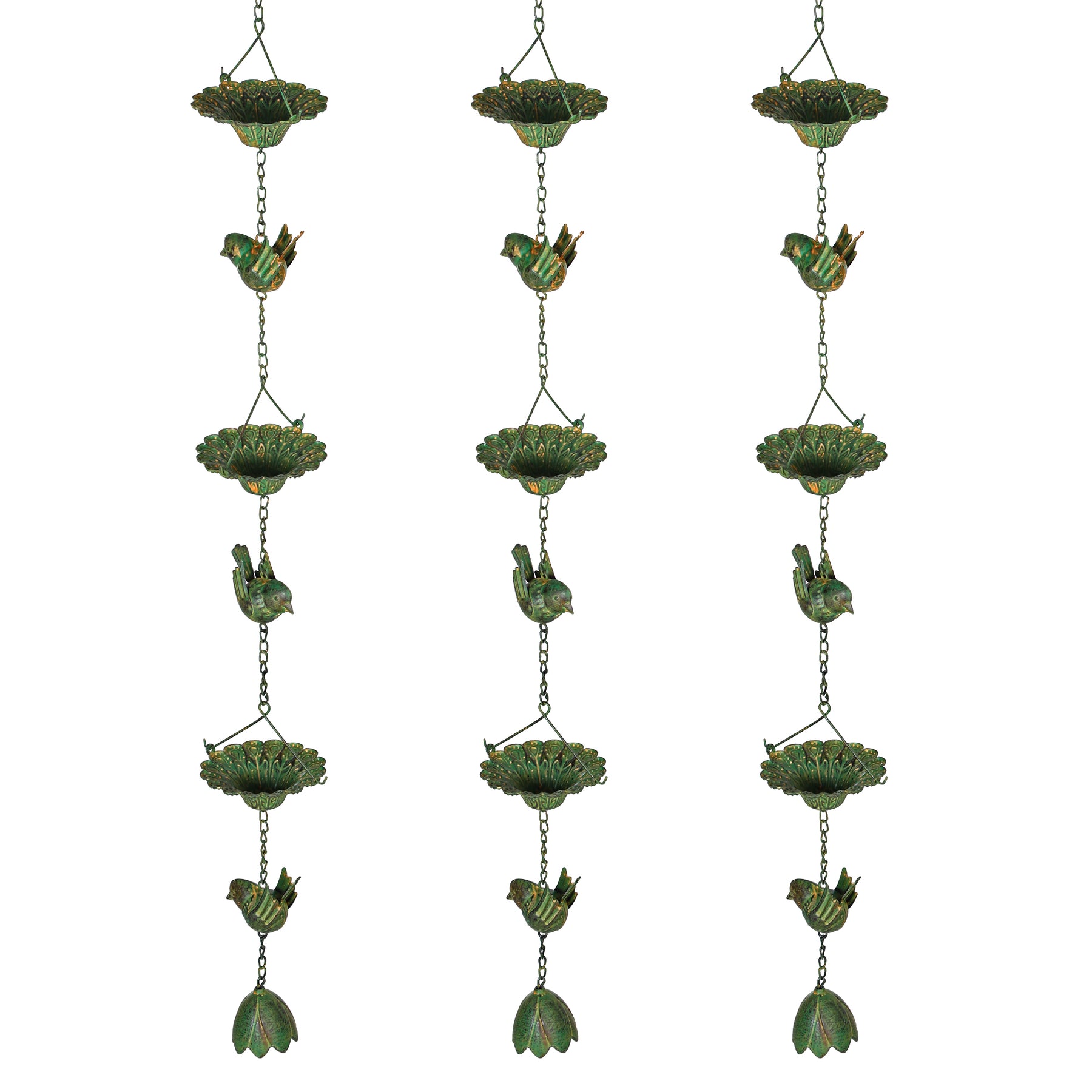 Forskøn din have med dette tredelte regnkædesæt, dekoreret med kolibrier, blomsterskåle og en lotusklokke. Disse regnkæder er lavet af korrosionsbestandigt metal, som elegant opsamler og leder regnvand, samtidig med at de tilfører harmoniske lyde til dit udendørsområde. De er nemme at installere og tilbyder en charmerende tilføjelse til dine tagrender.