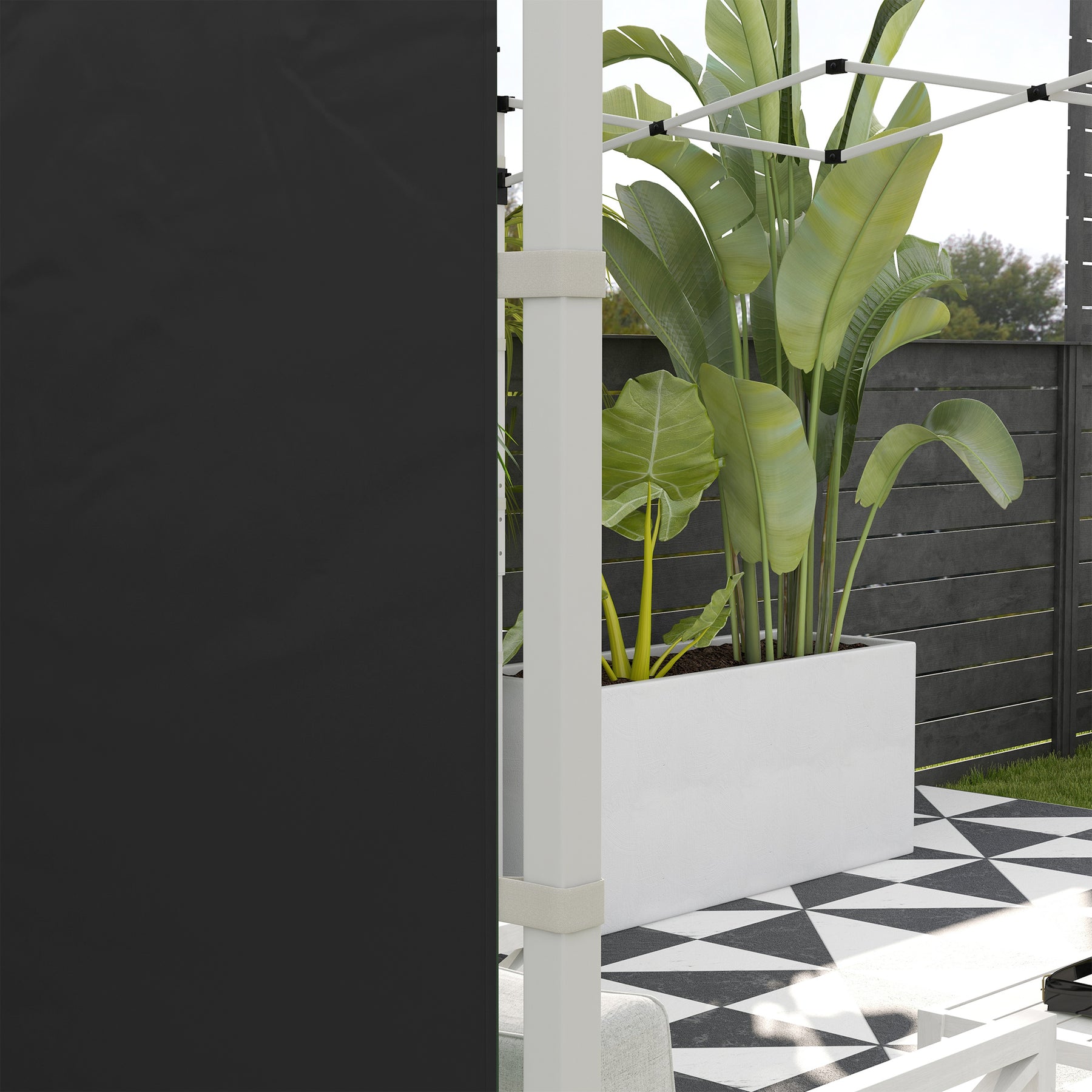 Giv din havepavillon et friskt look med dette sæt af sidepaneler! Med to sidepaneler, der passer til de fleste foldepavilloner på 3 x 3 m eller 3 x 6 m, er de lavet af slidstærkt Oxford-polyester. Dobbeltlagede rullevinduer slipper lys ind og lynlåsdøre giver nem adgang.