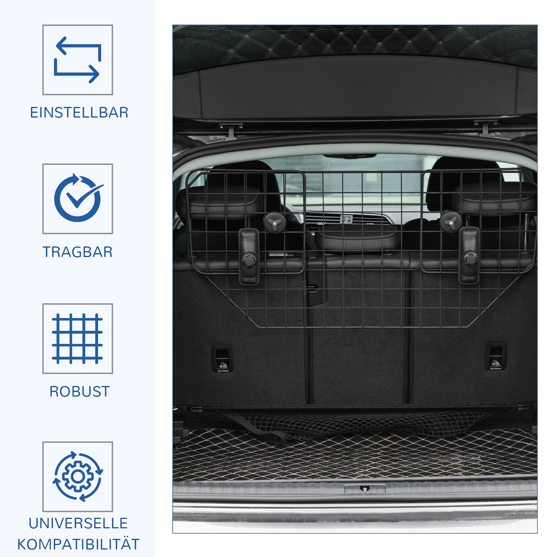 Transporter dit kæledyr sikkert i bilen med denne robuste barriere. Den justerbare konstruktion gør den ideel til alle typer køretøjer, og du kan nemt tilpasse bredden til dit behov. Nu kan du trygt have dit kæledyr eller bagage i bagagerummet.