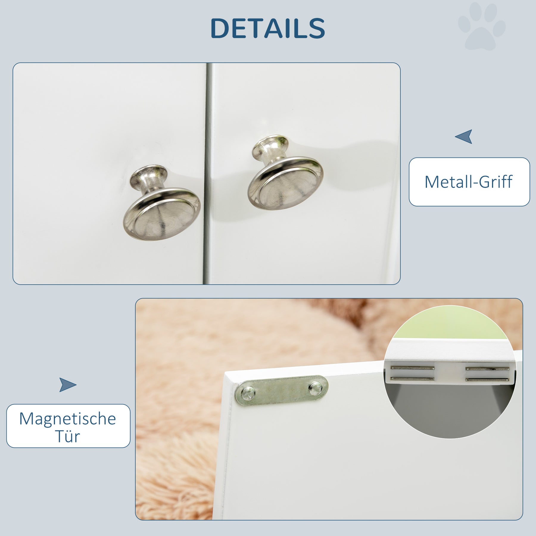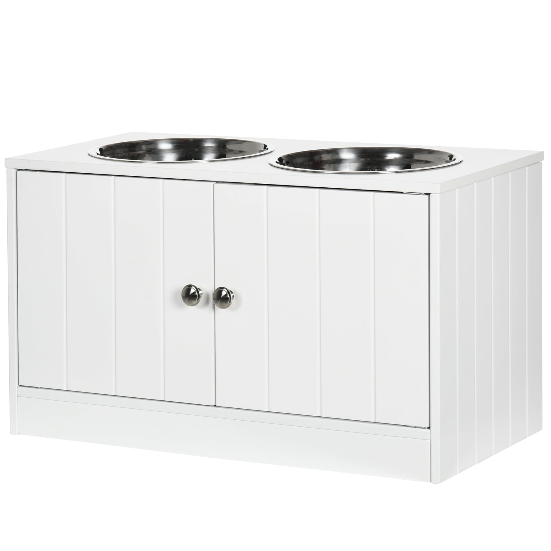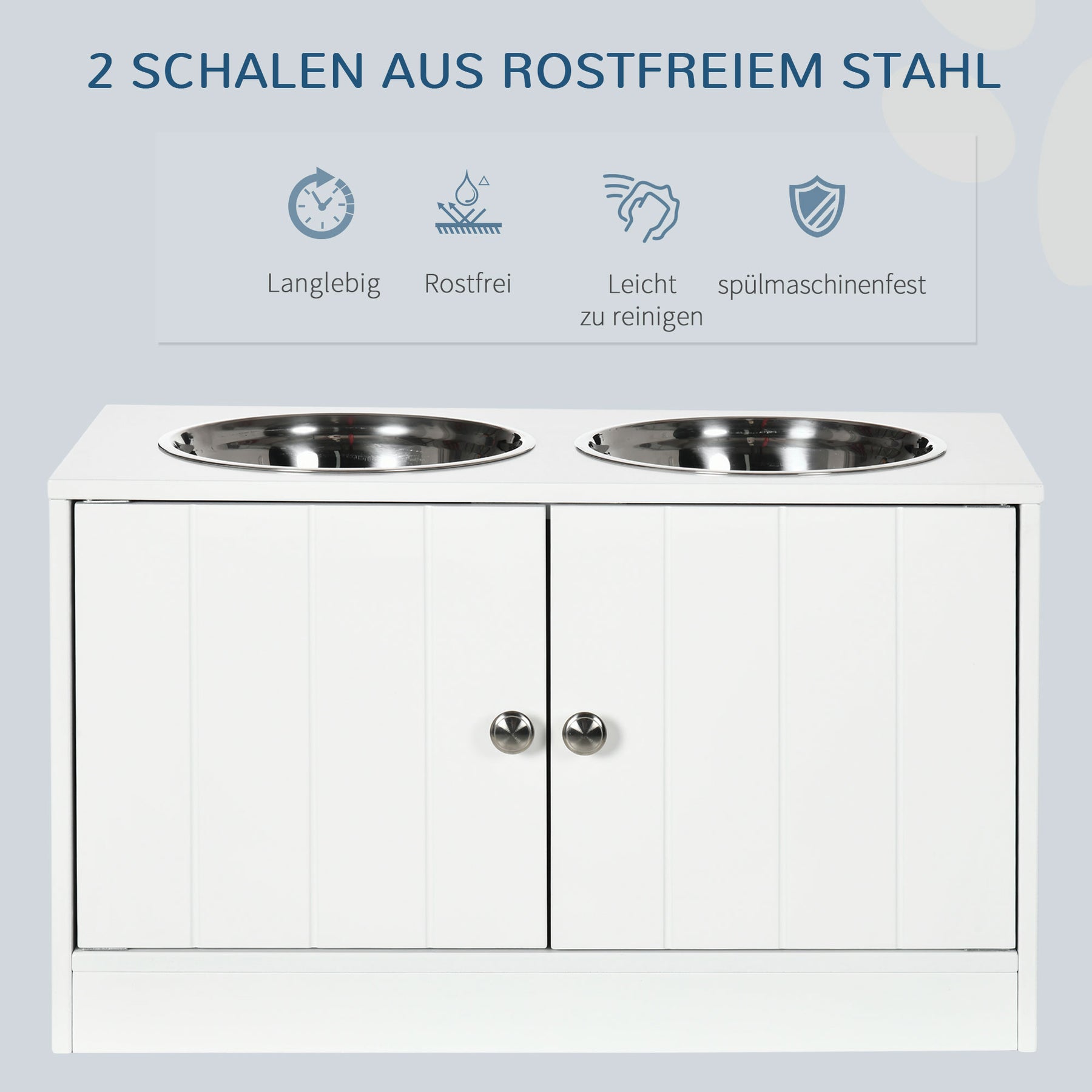 Denne hundefoderstation er den ideelle løsning til fodring af din firbenede ven. Med et rummeligt opbevaringsrum har du masser af plads til mad, legetøj og meget mere. De magnetiske døre sikrer sikker opbevaring, mens de store, opvaskemaskine-sikre skåle i rustfrit stål gør rengøringen til en leg. Det hævede design aflaster din hunds hals og sikrer en behagelig spisestilling.