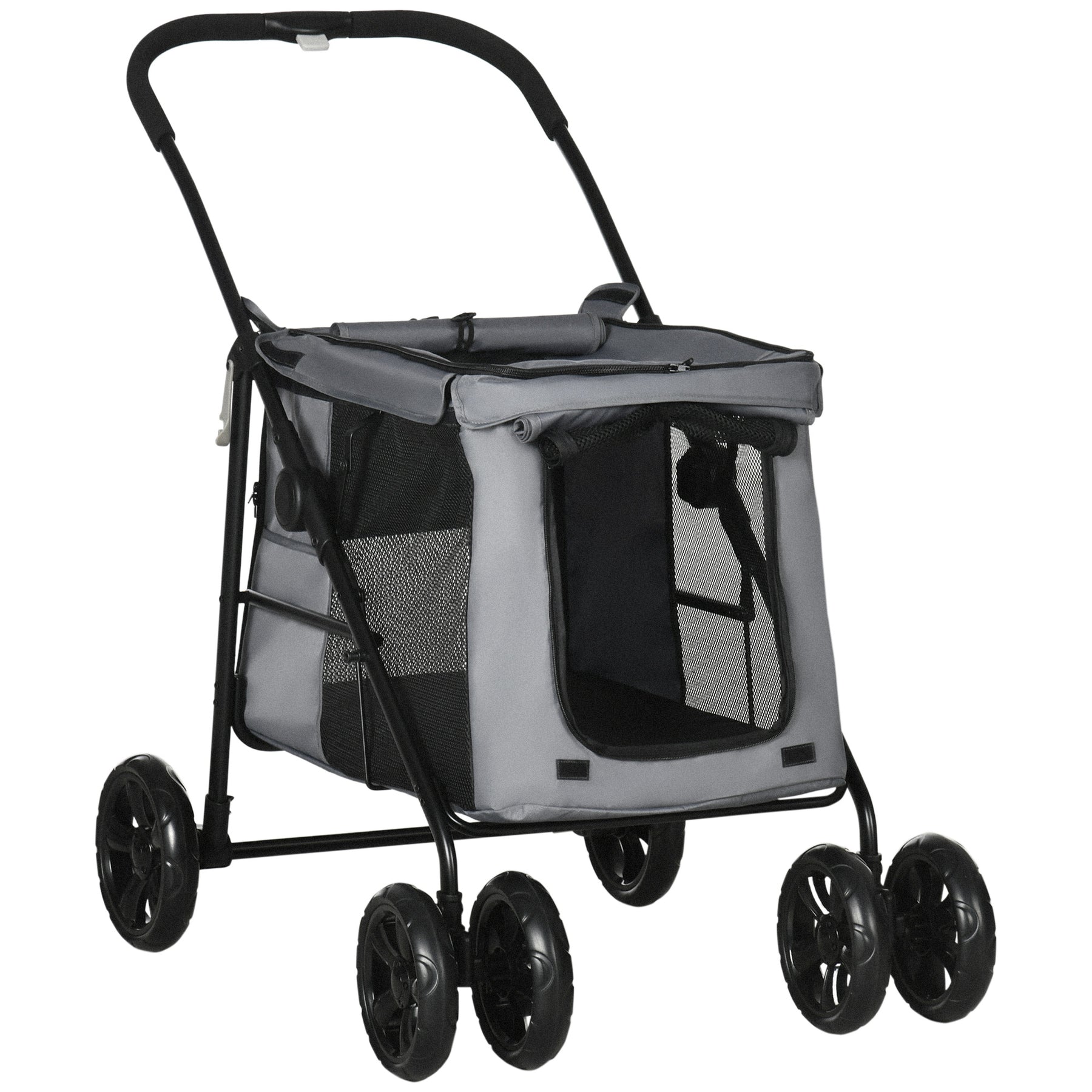 Tag din firbenede ven med på eventyr med denne praktiske hundebåre. Den foldes nemt sammen med et klik, hvilket gør den ideel til transport. Med fire hjul og et håndtag er den let at manøvrere, uanset hvor du går.