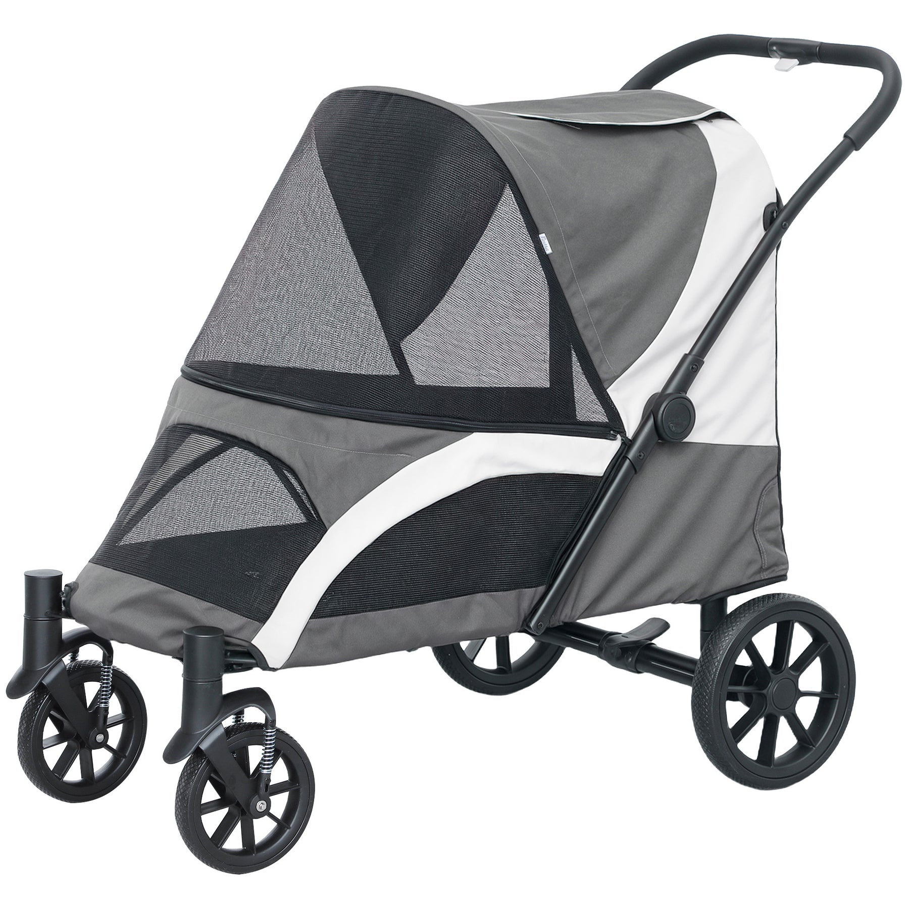 Hundeklapvogn, sammenklappelig hundeklapvogn til store hunde, kæledyrsklapvogn med 4 hjul, sikkerhedsline, bremser, mørkegrå