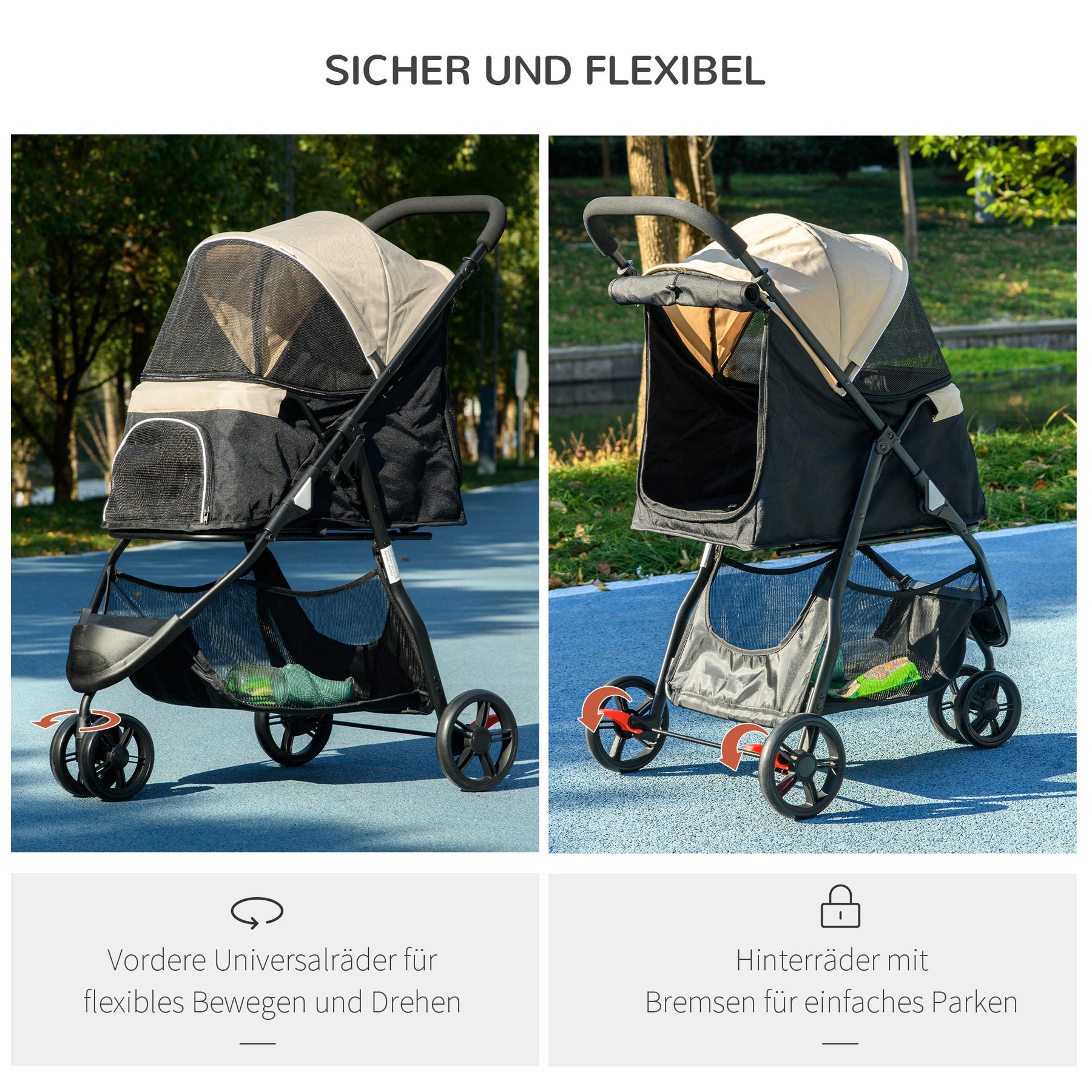 Tag din hund sikkert med udenfor med denne praktiske hundebår. Den er designet til at transportere kæledyr op til 10 kg og har letrullende hjul samt et håndtag for nem transport. Den rummelige øverste kurv giver dit kæledyr masser af plads, mens netvinduet sikrer god luftcirkulation og det justerbare tag beskytter mod vejret.