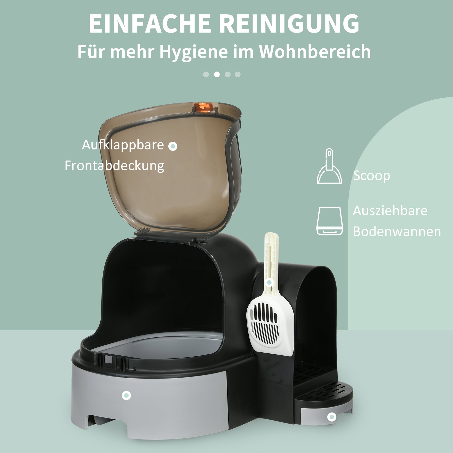 Opdag den perfekte løsning til din kat med denne stilfulde kattebakke. Det lukkede design giver ikke kun privatliv, men også en tryg og sikker atmosfære for din kat. Rengøringen bliver en leg med de to udtræksbakker og den medfølgende skovl, hvilket gør det nemt for dig at holde området rent.