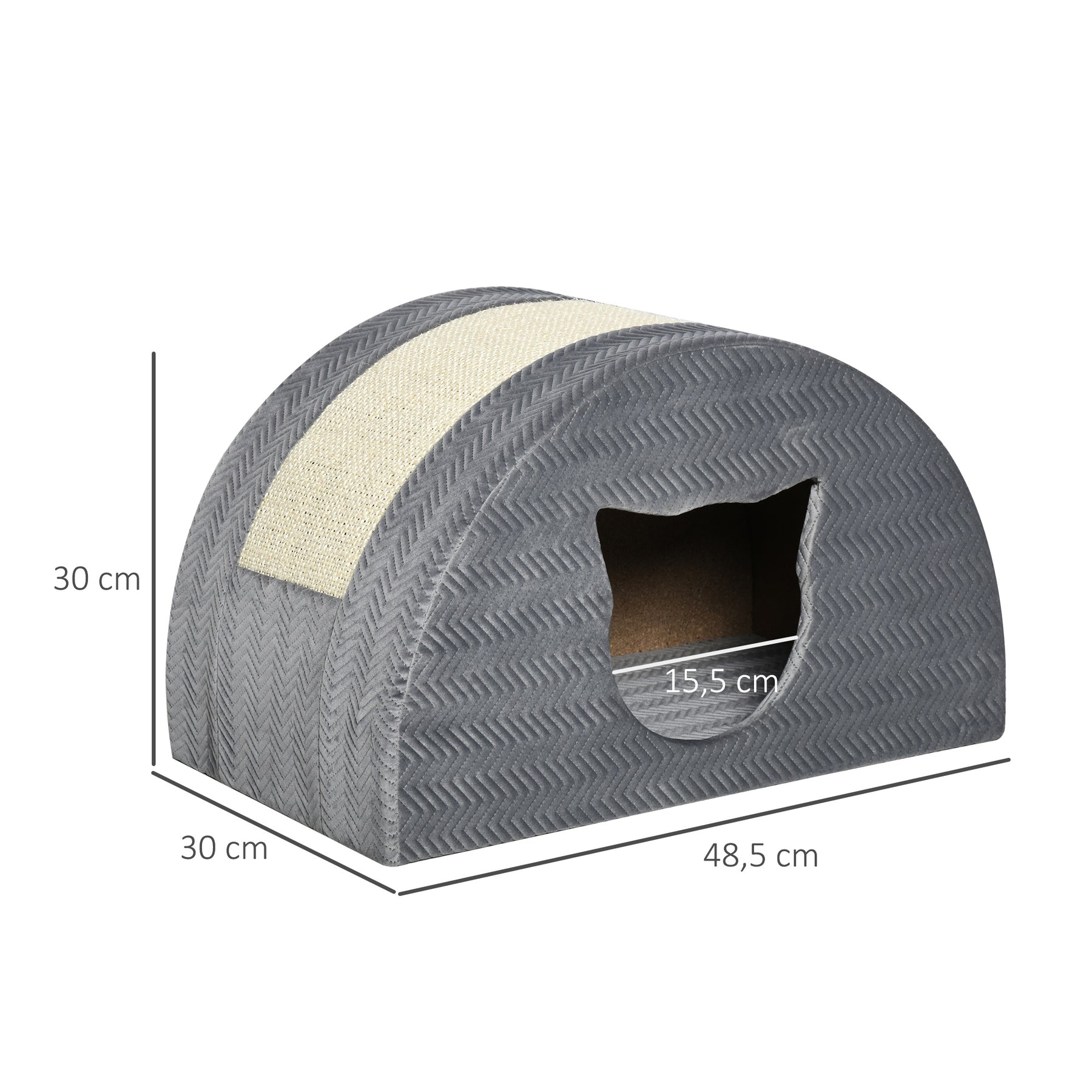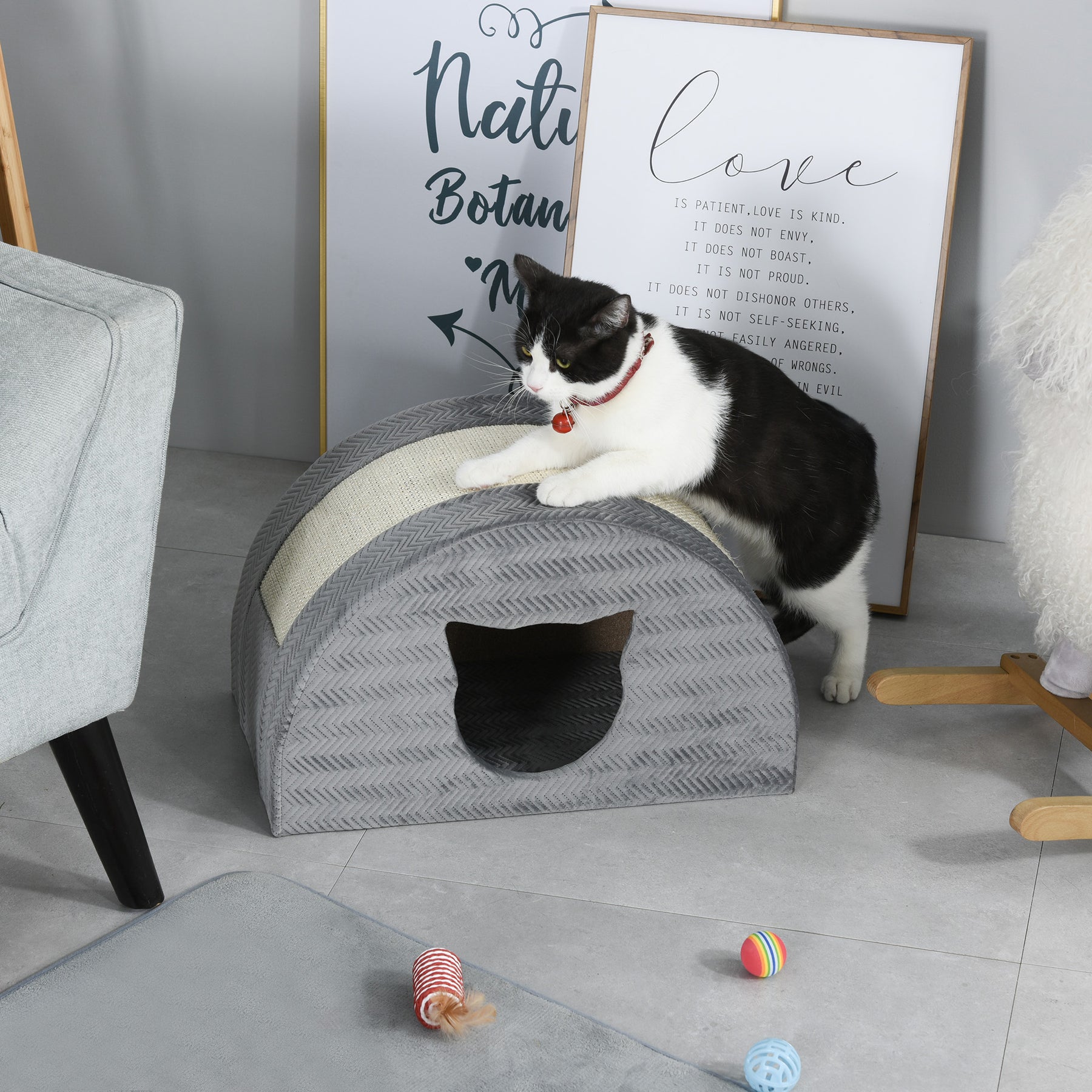 Stimuler din kats naturlige instinkter på en legende og sikker måde med dette moderne kattehus. Det tilbyder dit kæledyr et behageligt fristed at lege og hvile sig i, mens den bløde, plysagtige overflade sikrer en perfekt hvileoplevelse.