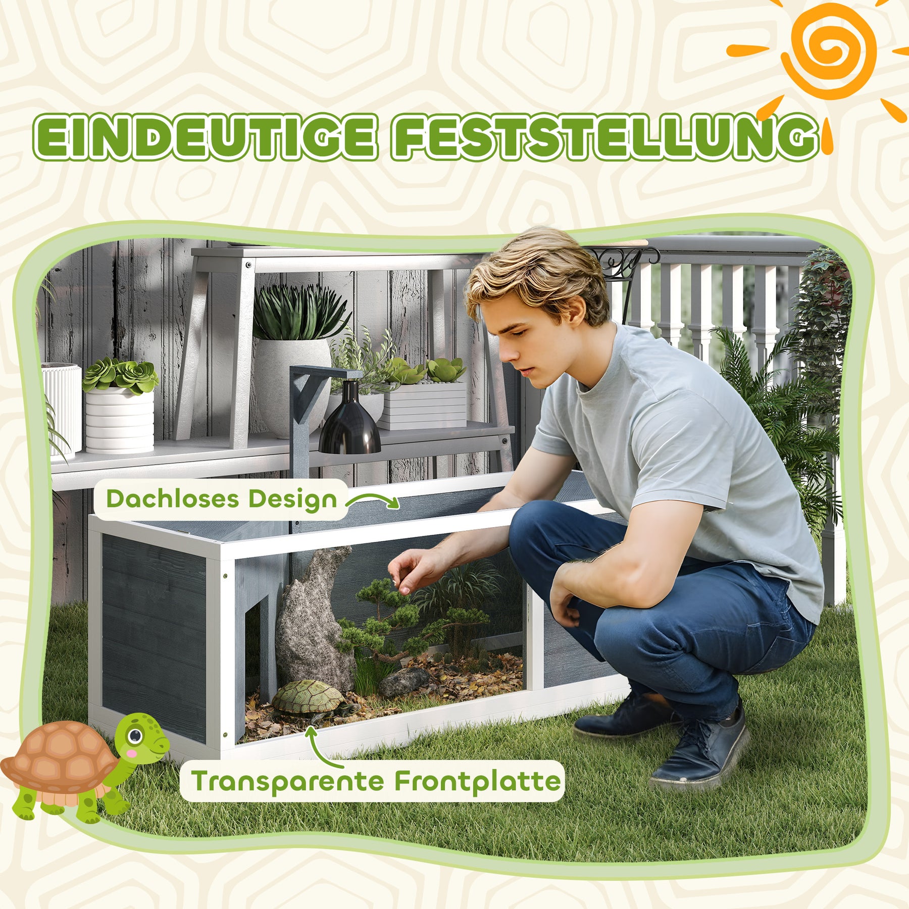 Opdag det ideelle hjem til din skildpadde med dette skildpaddehus. Det inkluderer to hovedindhegninger og et centralt legeområde, hvilket gør det nemt at observere og interagere med dit kæledyr. Den lette rengøring og det robuste, vejrbestandige materiale gør vedligeholdelsen til en leg.