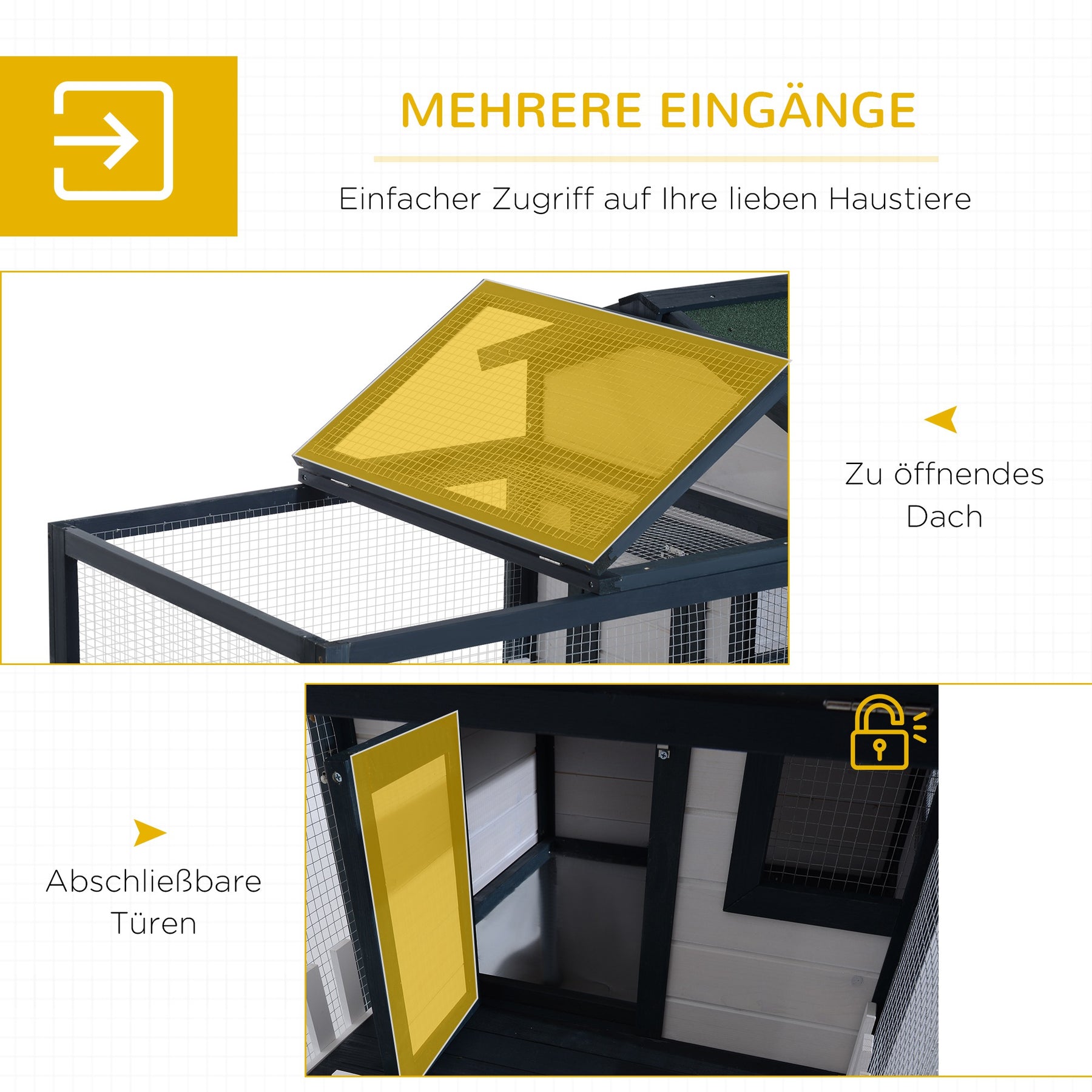 Dette dværgkaninbur af høj kvalitet er det ideelle hjem til små dyr. Buret er lavet af lakeret træ og har galvaniseret metalnet. Taget med bitumenmembraner tilbyder dine kæledyr et sikkert og varmt ly, selv i dårligt vejr.