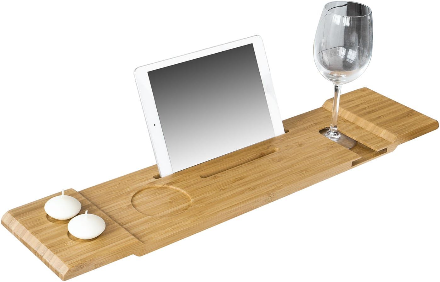Forkæl dig selv med dette stilfulde badekarstativ i bambus. Med specialdesignede holdere til din tablet, mobiltelefon, vinglas, stearinlys og sæbe, har du alt, hvad du behøver for at forvandle dit bad til en ren wellness-oplevelse.