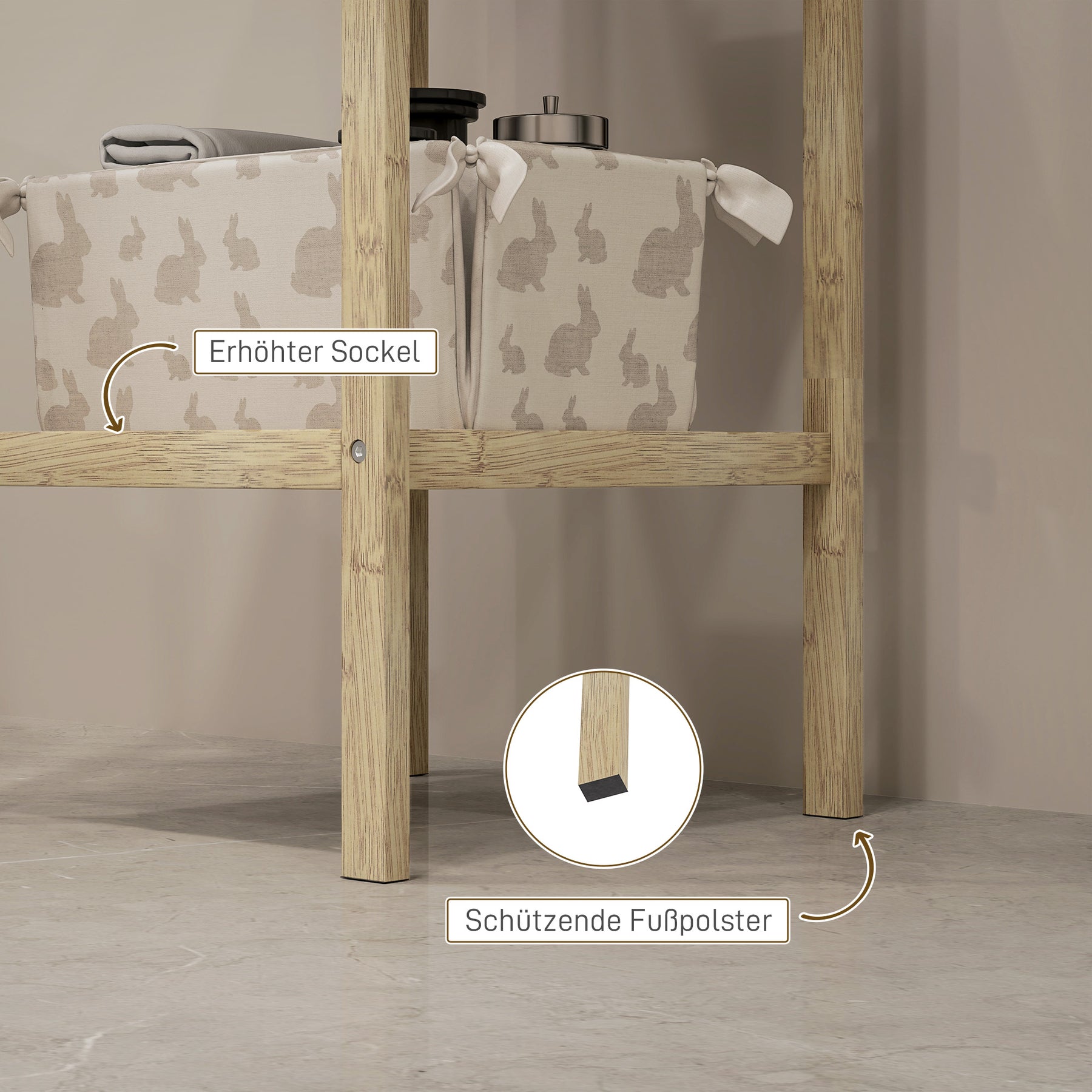 Oplev enkel elegance med denne badeværelseshylde. De tre hylder tilbyder rigelig plads til dine toiletartikler og forbedrer funktionaliteten i dit badeværelse. Den er lavet af lakeret bambus, der modstår fugt, mens det anti-tip-design sikrer din sikkerhed.