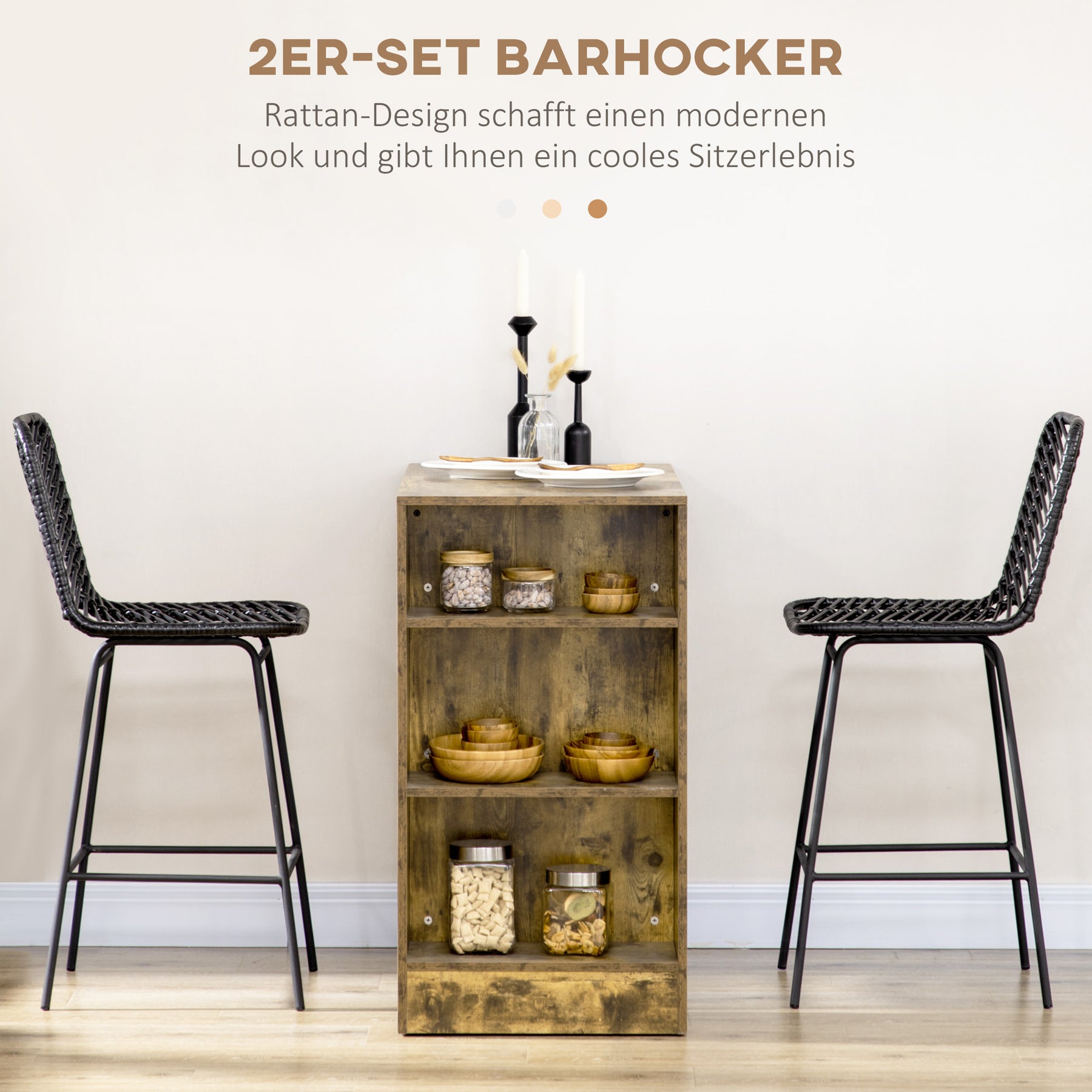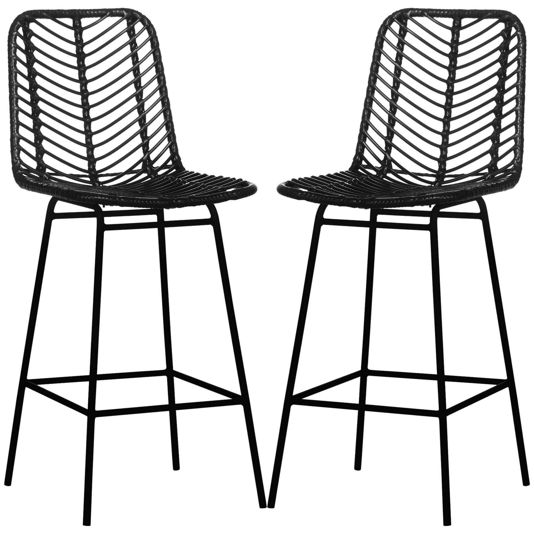 Bring boho-stilen ind i dit hjem! Uanset om det er til en søndagsbrunch eller en afslappende aften med dine yndlingsdrinks, opfylder dette sæt med to barstole alle dine ønsker. Sædet og ryglænet med rattan-look giver k kitchenstolsættet et trendy boho-look, mens stålbenene sikrer stabilitet.