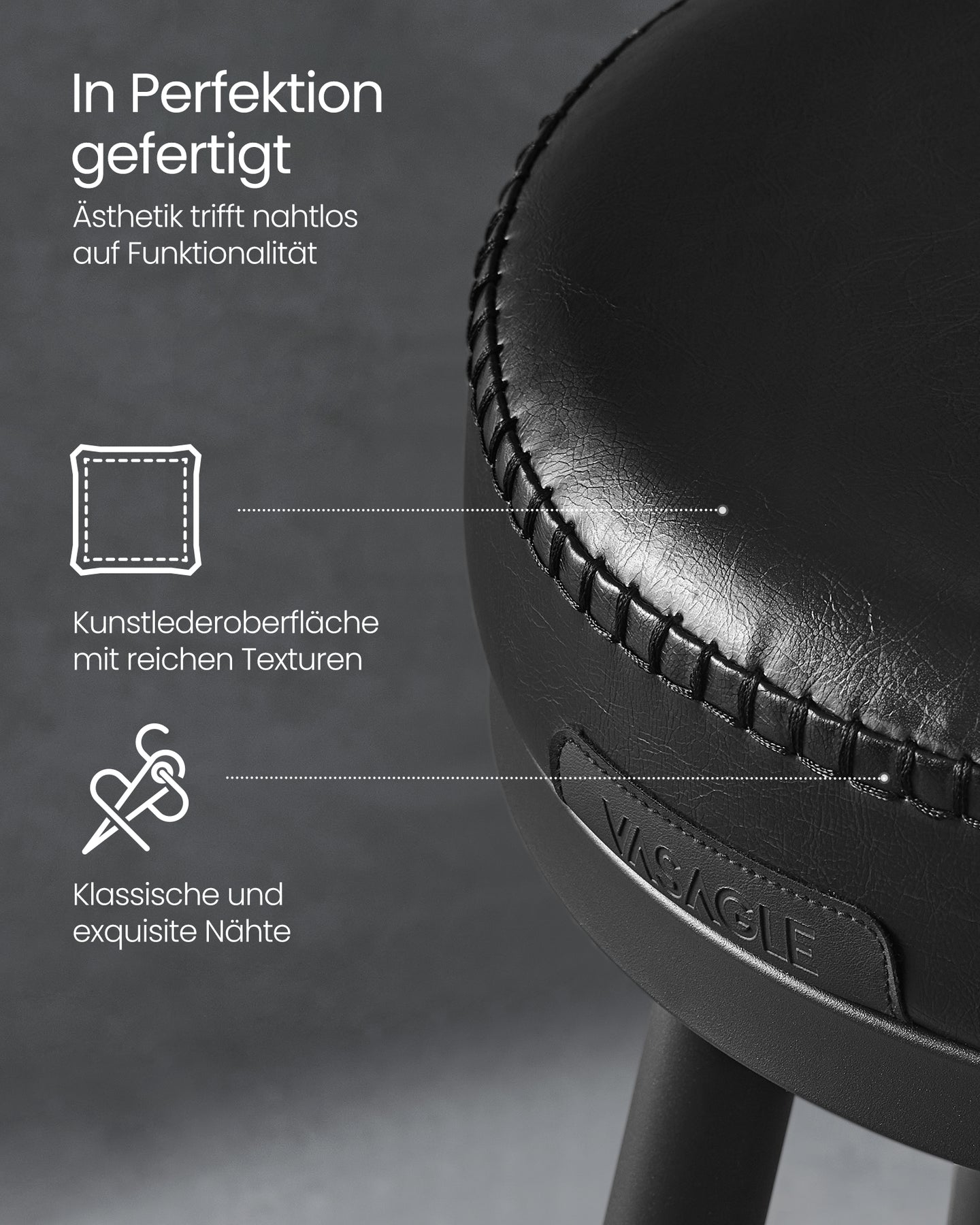 Den rige, teksturerede kunstlæderfinish og de fine syninger vidner om et design, der oser af kvalitet og god smag. Barstolene er ikke bare et møbel, men en del af din indretning, der taler om din stil og sans for detaljer.