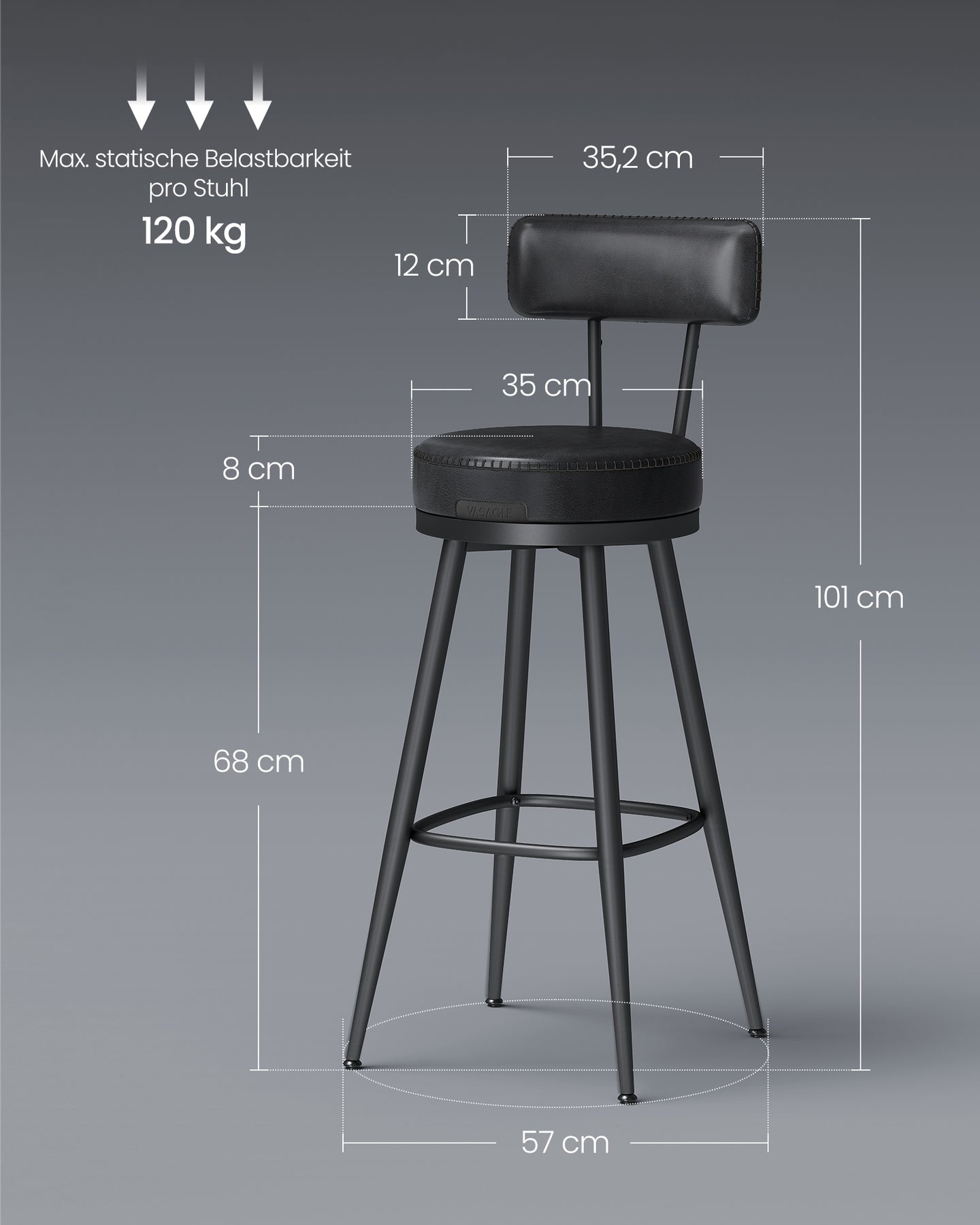 Maksimal statisk belastning per stol: 120 kg