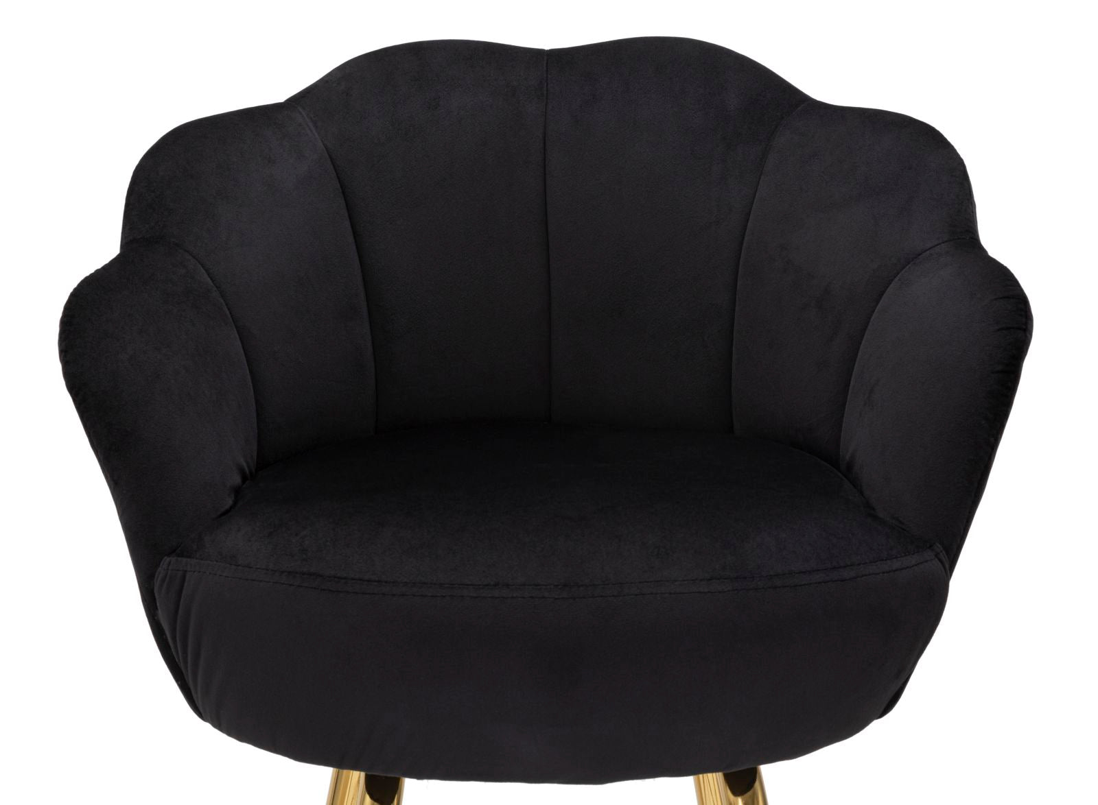 Barstolen har et unikt design med gyldne ben formet som kronblade, der tilfører et særligt og eksklusivt udtryk. Den elegante kombination af det bløde fløjl og det skinnende gyldne metal skaber en unik stil, der vil være et iøjnefaldende element i ethvert rum.