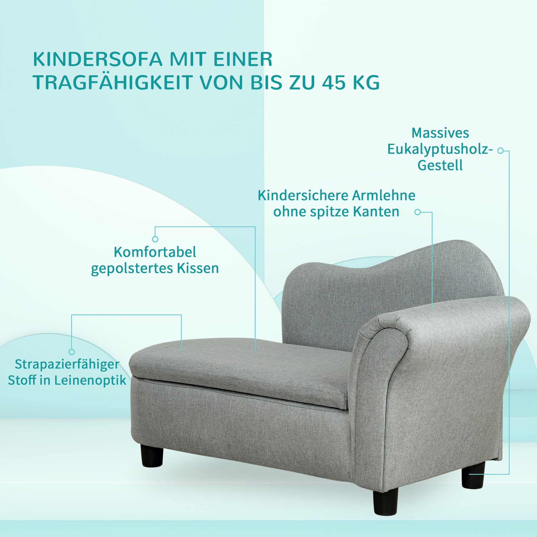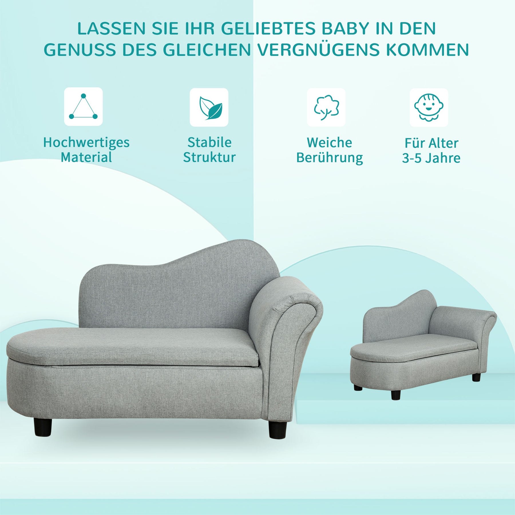 Børnesofa, chaiselong, skjult opbevaringsrum, eukalyptustræstel, grå, 80 x 40 x 49 cm