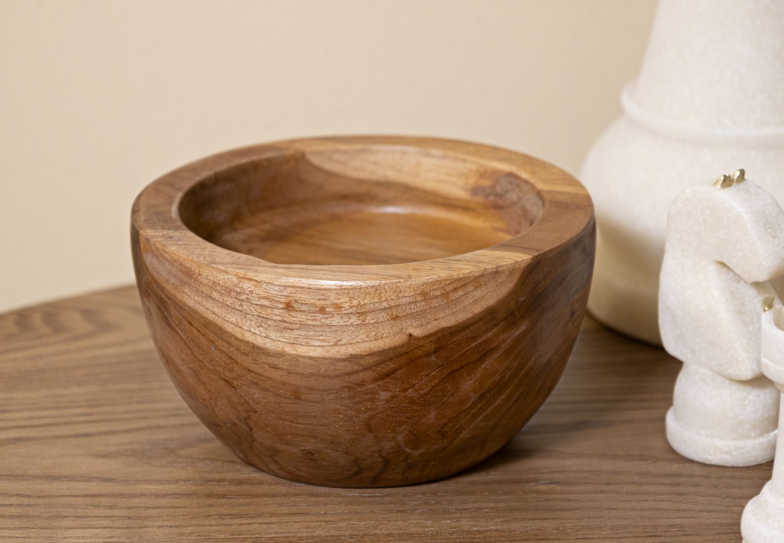 Med sin smukke, bugtede form og varme træfarve kombinerer bakken elegance med bæredygtighed. Dens indbydende kurver og bløde overflade gør den til et dekorativt element, der tilføjer en følelse af raffineret skønhed til hverdagen.