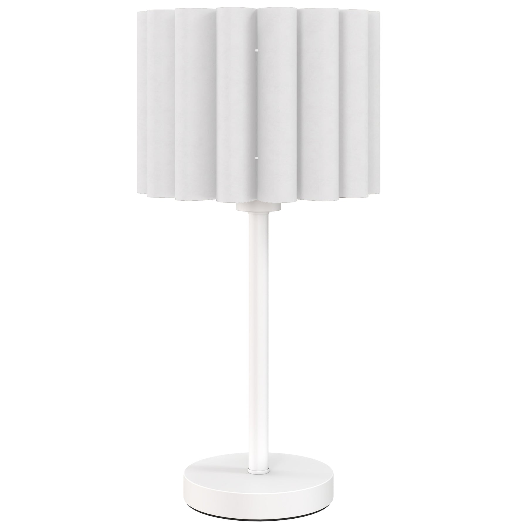Tilføj et strejf af stil til dit rum med denne elegante skrivebordslampe. Dens plastikskærm har livlige bølgekonturer i en moderne retrostil, der vil pifte ethvert rum op. Lampen passer til en E27-fatning og er egnet til både halogen- og LED-pærer, hvilket giver dig fleksibilitet i valget af belysning.