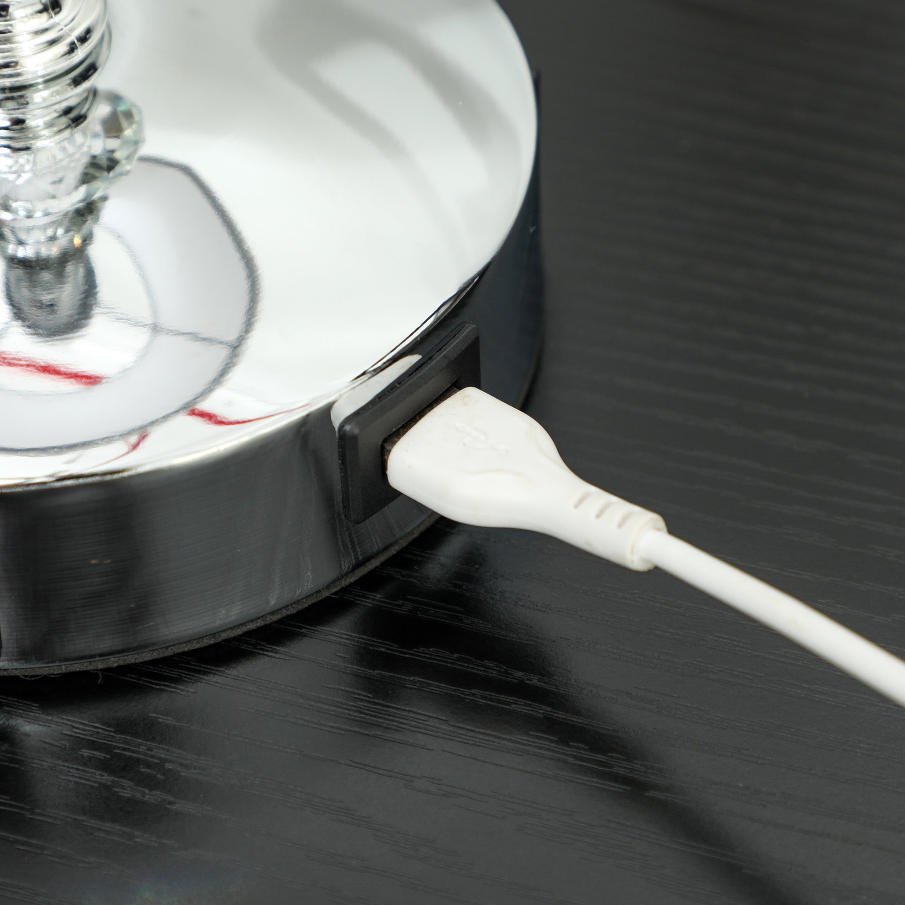 Krystal bordlampe, touch afbryder, usb opladningsport, ø23x45 cm, sølv