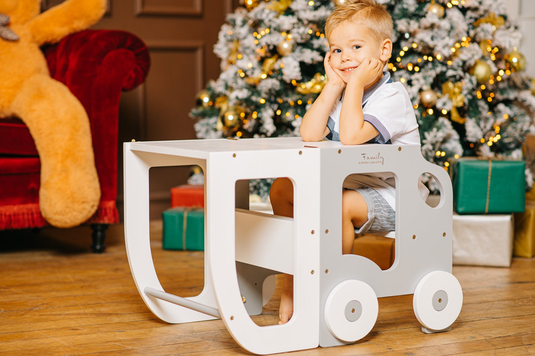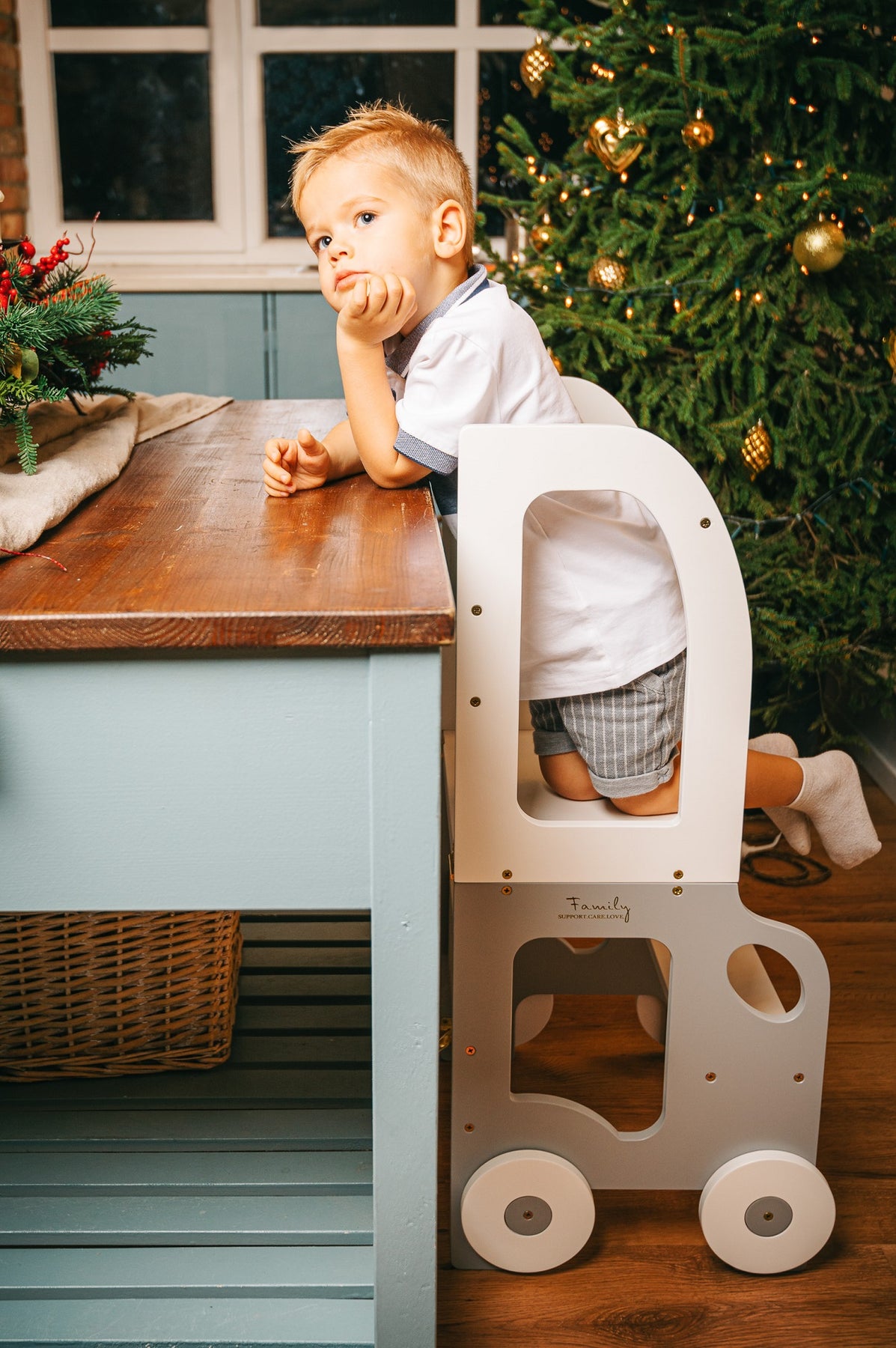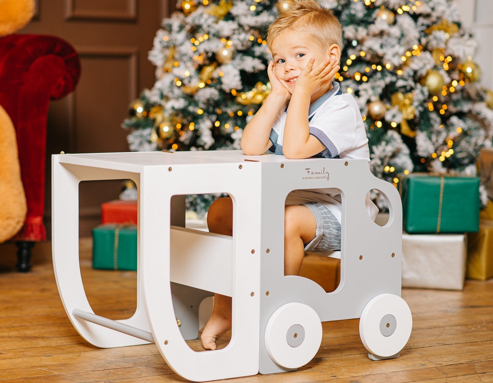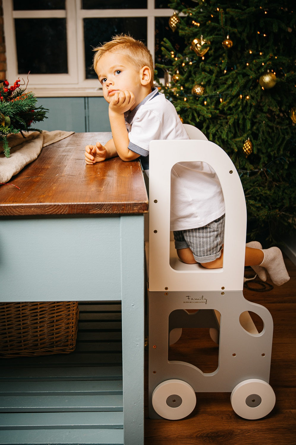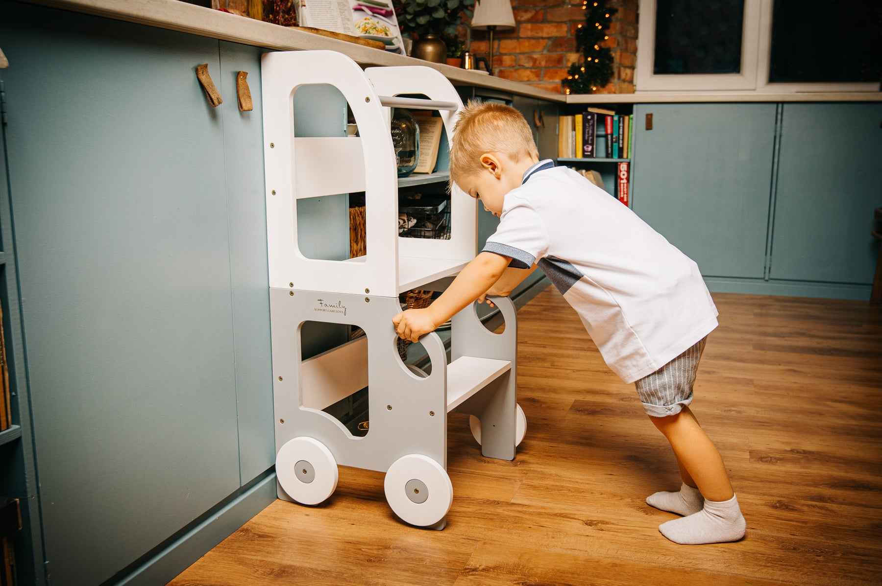 Denne montessori-inspirerede køkkentrapper, der nemt kan omdannes til bord og stol, er designet og skabt til læring, madlavning, klatring, siddeplads ved det store familiarbord samt spisning eller bare leg. Og det mest spændende er, at den ligner et legetøj og kan blive en god ven for dit barn.