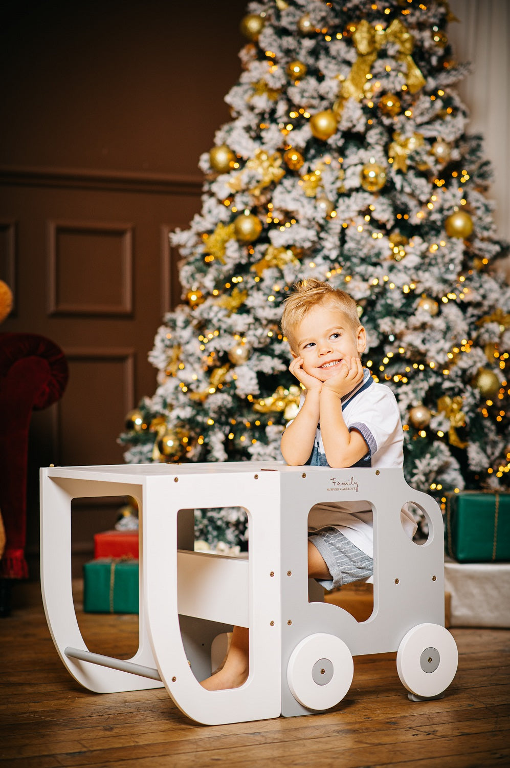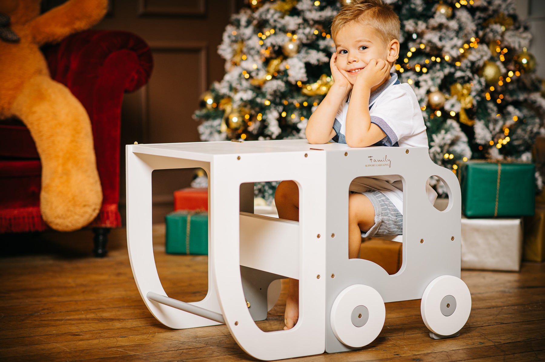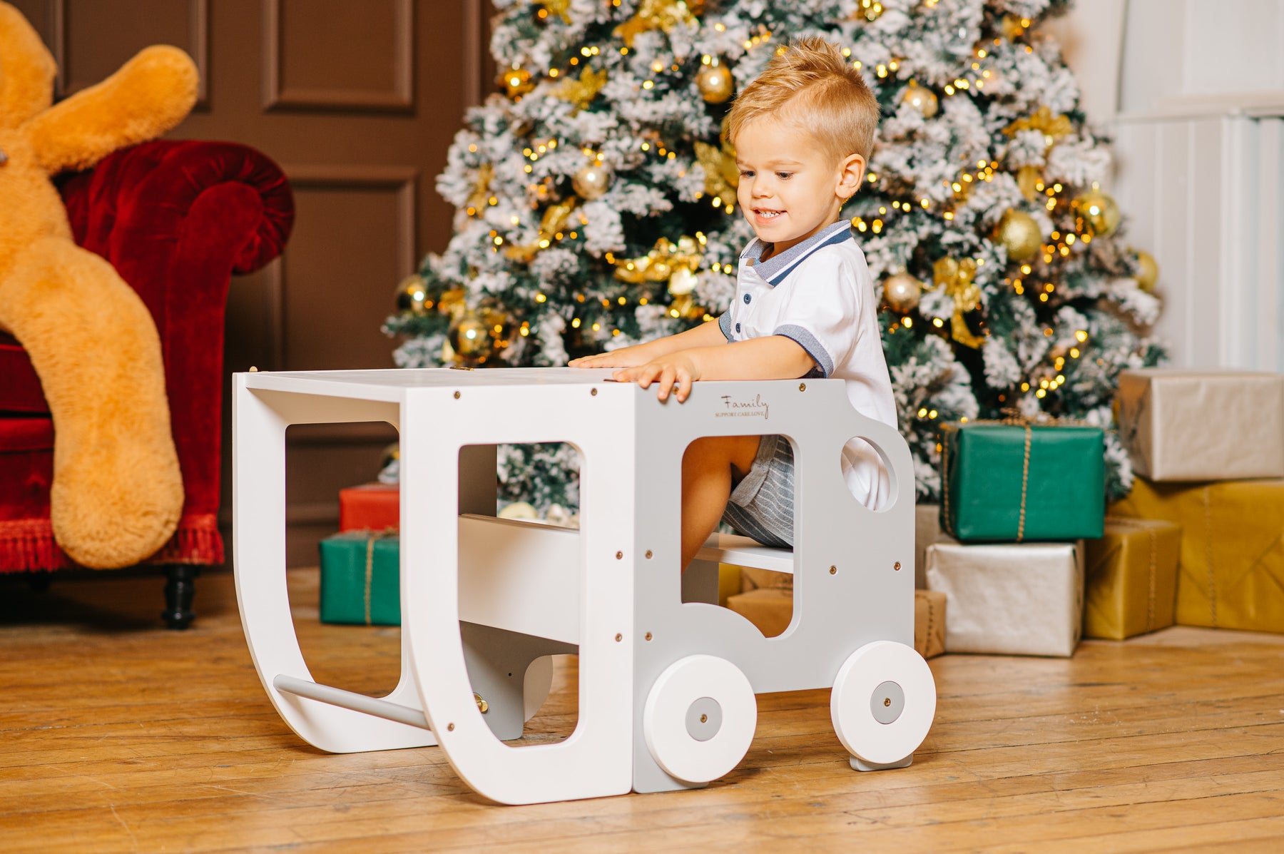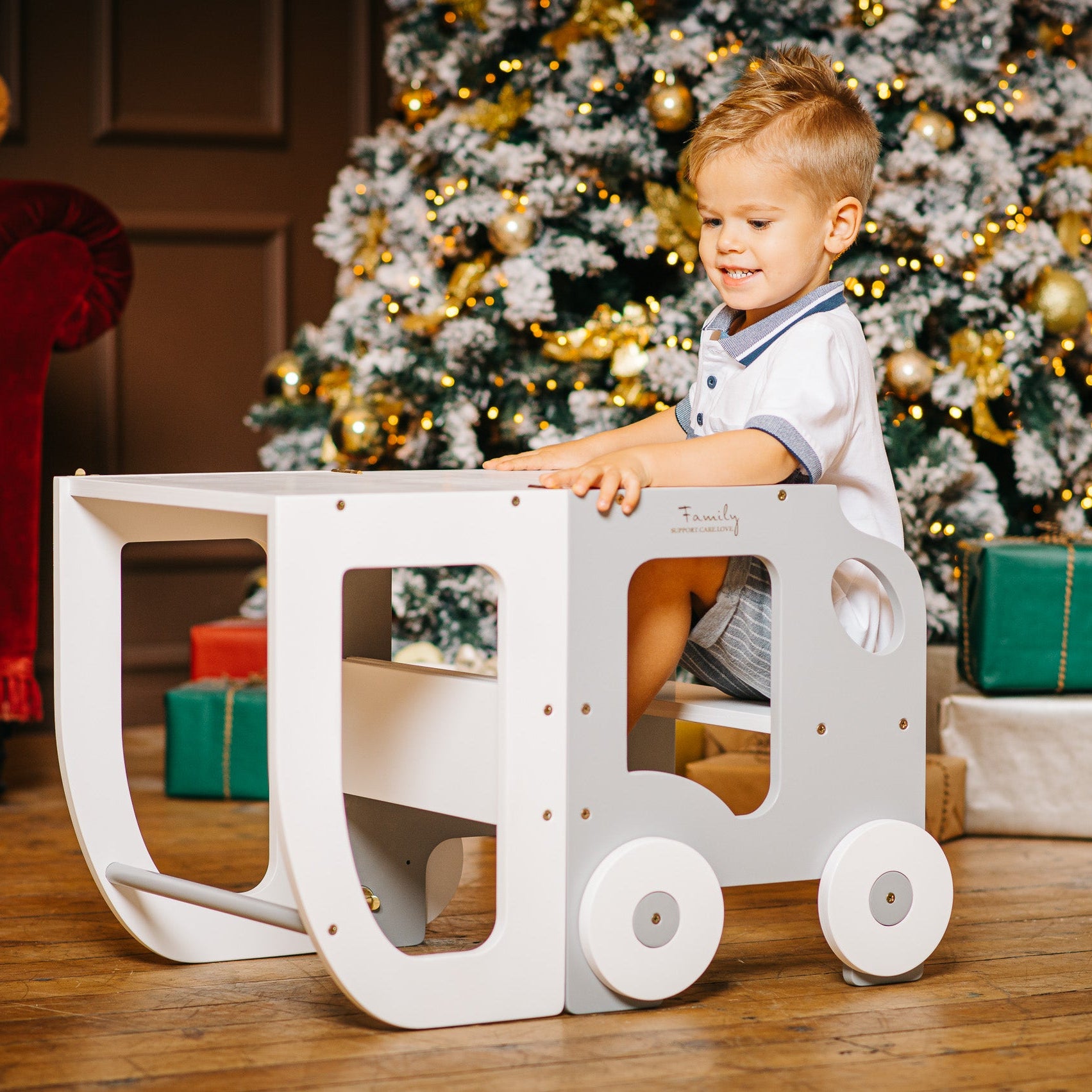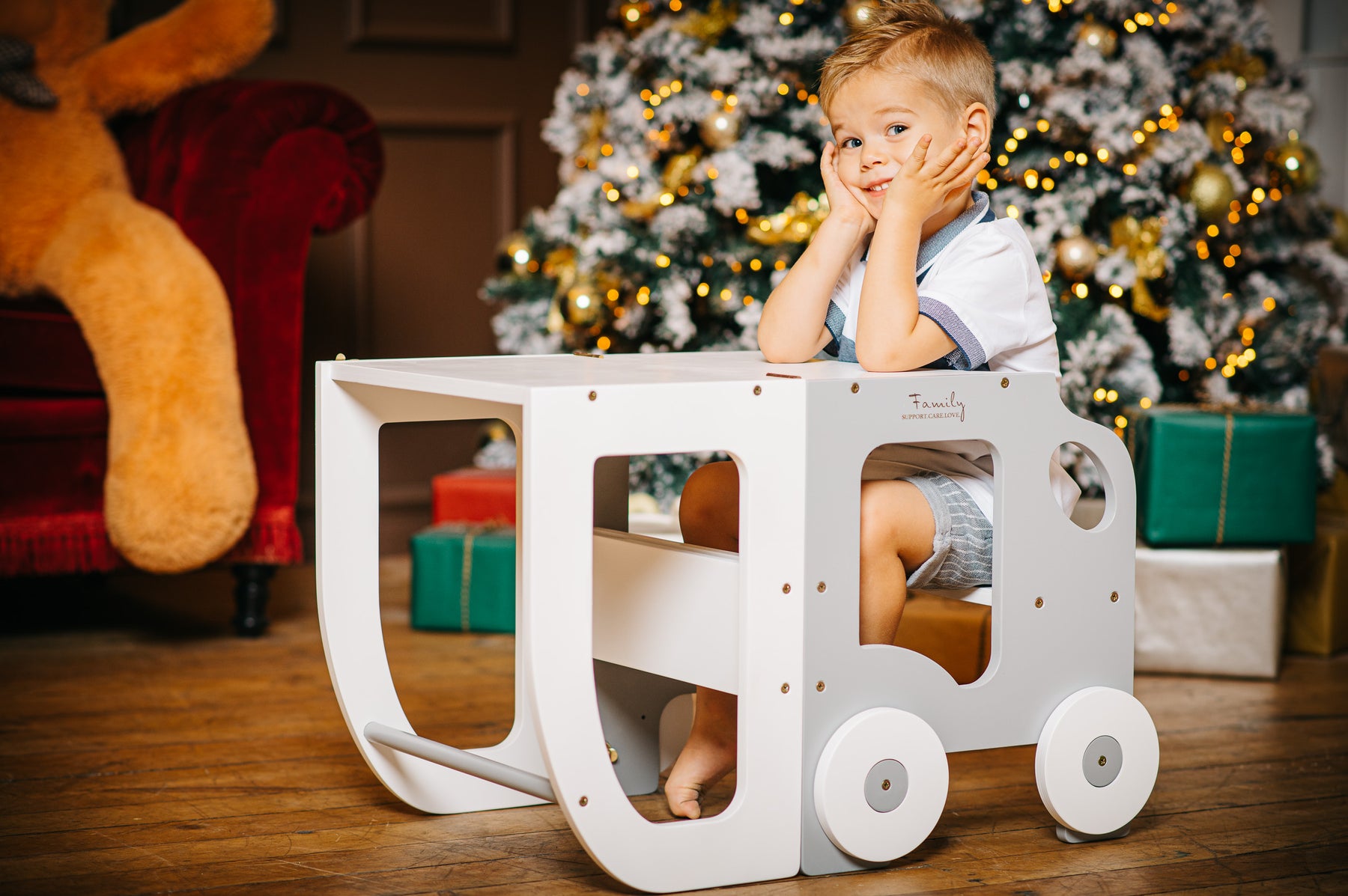 Denne montessori-inspirerede køkkentrapper, der nemt kan omdannes til bord og stol, er designet og skabt til læring, madlavning, klatring, siddeplads ved det store familiarbord samt spisning eller bare leg. Og det mest spændende er, at den ligner et legetøj og kan blive en god ven for dit barn.