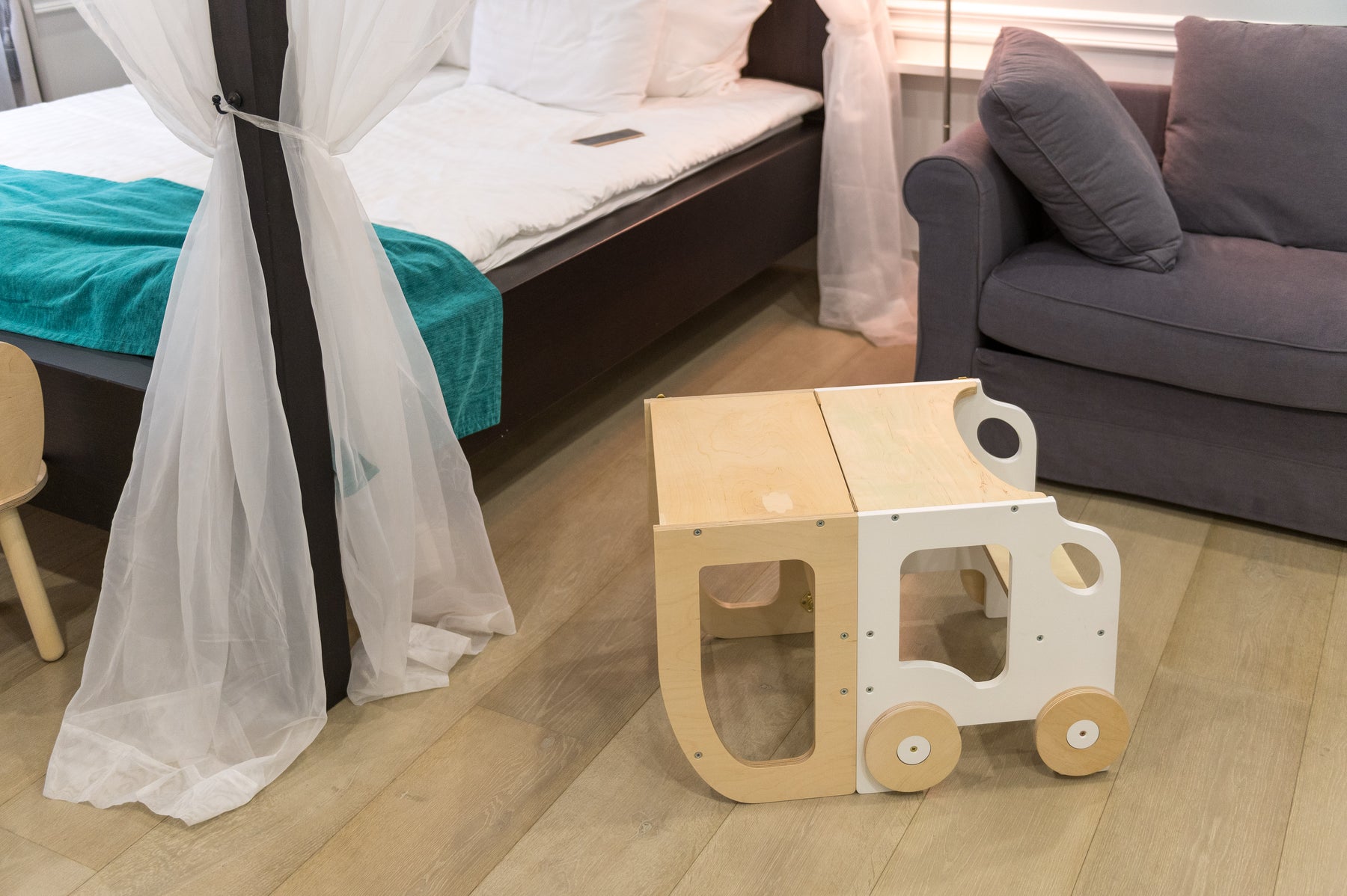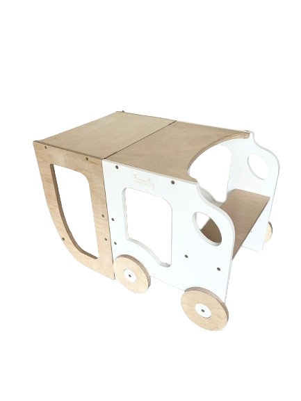 Denne montessori-inspirerede køkkentrapper, der nemt kan omdannes til bord og stol, er designet og skabt til læring, madlavning, klatring, siddeplads ved det store familiarbord samt spisning eller bare leg. Og det mest spændende er, at den ligner et legetøj og kan blive en god ven for dit barn.